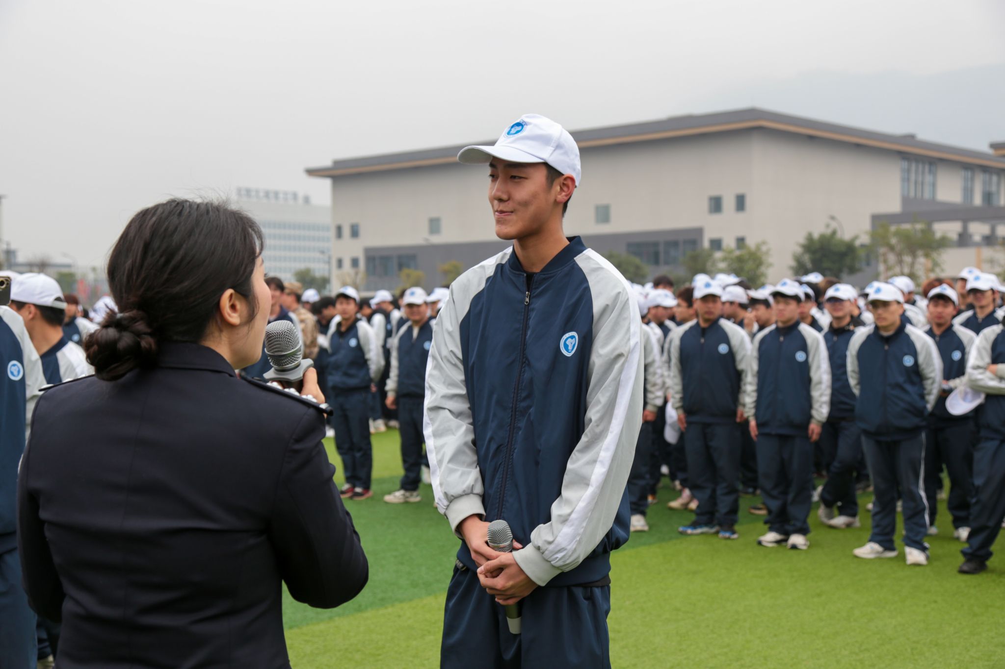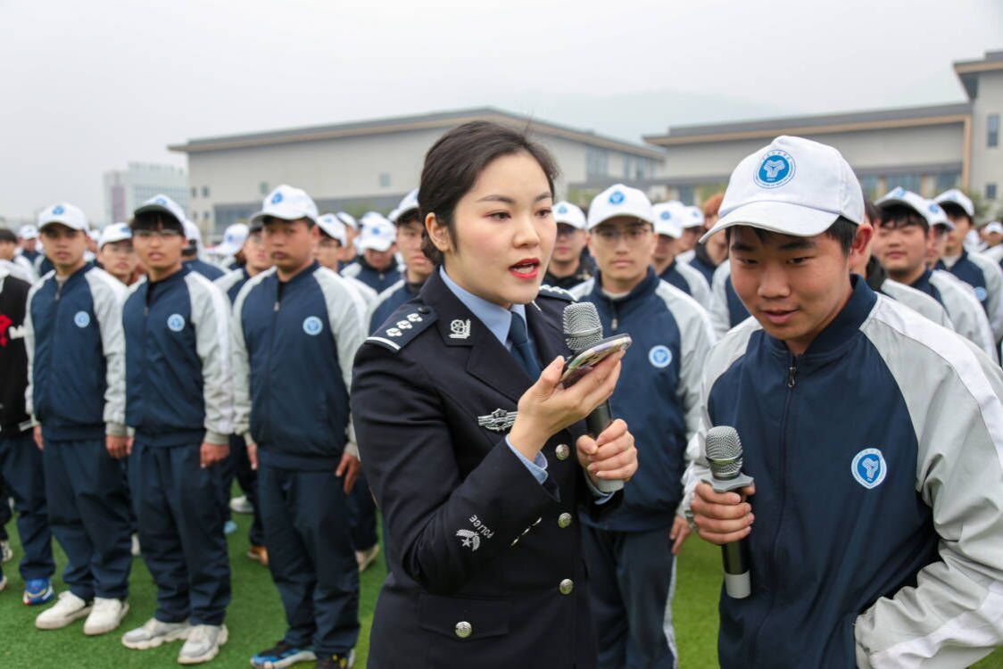 在这样紧张而又充满活力的氛围中,学校特邀民警开展了一场生动而别致的反诈骗宣讲活动,为正在军训的大一新生们增添了一抹别样的色彩。