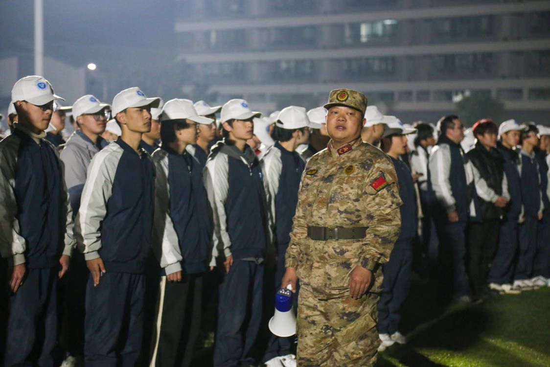 在夕阳余晖渐淡的夜晚,军训训练场依然灯火通明。在这静谧的夜晚,学生们的身影在灯光下显得格外坚定和刻苦。尽管夜色深沉,他们依旧认真完成每一个训练动作,无一丝懈怠。