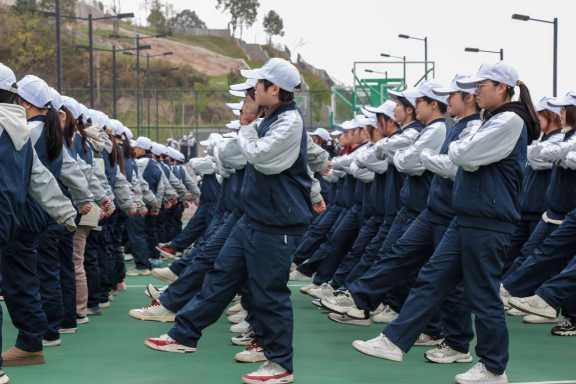 各个连队训练着各自的队列项目。军体拳、匕首操、分列式、队列式、外伤包扎等军训项目,帮助学生提升身体素质、纪律性、团队协作能力和自我保护能力,同时提高心理素质,为未来的学习和生活中的各种挑战做好准备。