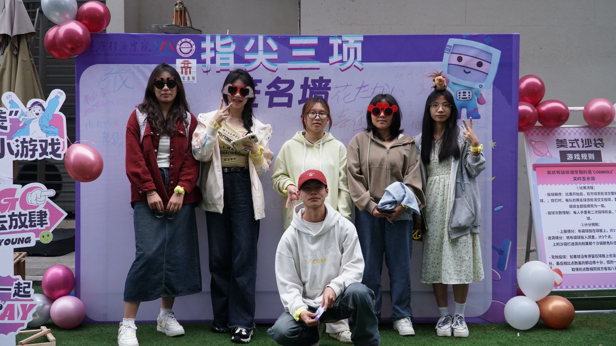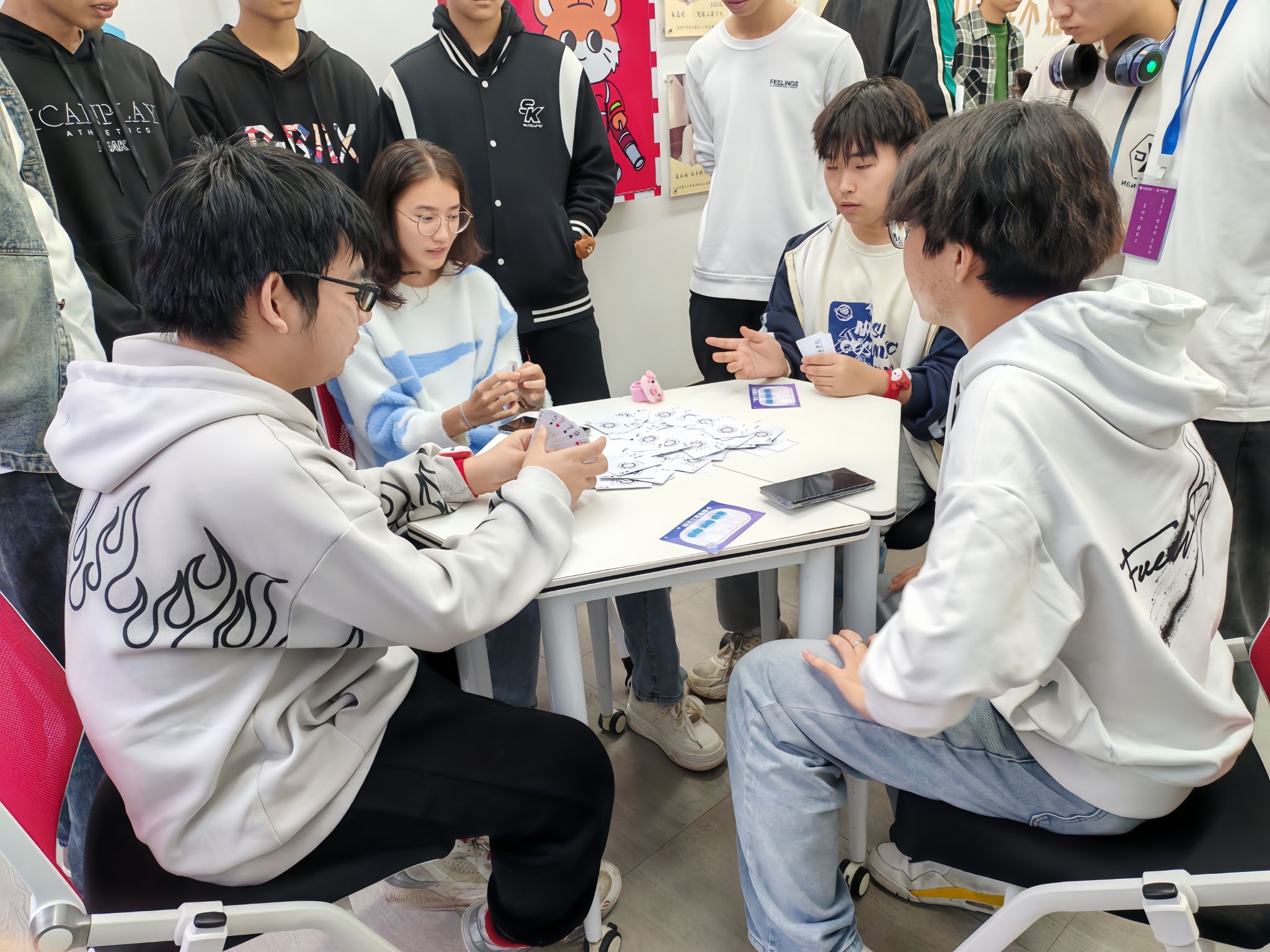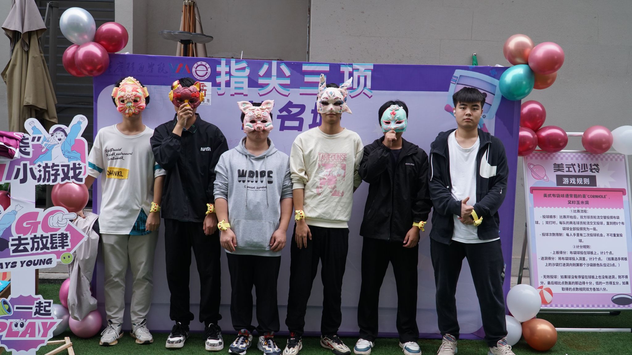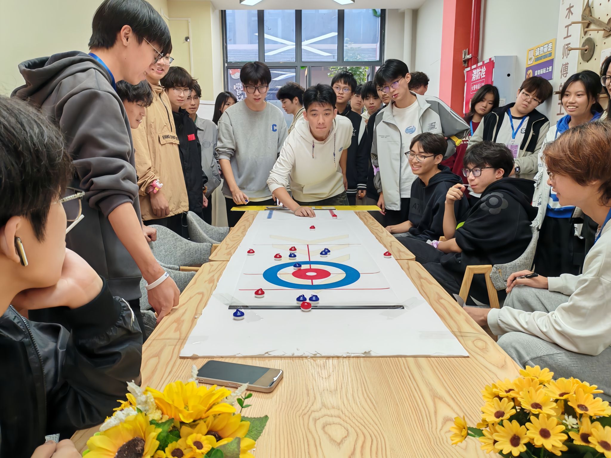 随着开幕式结束,同学们跟着工作人员去向不同的游戏区域。“掼蛋”游戏区域,几张方桌整齐排列,周围围满了观战的同学。空气中弥漫着紧张而又兴奋的氛围,每当有人打出精彩的组合或成功拦截对手的攻势时,周围便会爆发出阵阵欢呼和掌声。而“美式布袋球”则是一款充满趣味的投掷游戏,看着布袋在空中划过一道优美的弧线,然后精准地落在目标区域,同学们心中成就感是无法言喻的。而在室内的一角,“桌面冰壶”比赛正悄然进行。这里相对安静,但却散发出紧张与期待的气氛。参赛者们围成一圈,专注地盯着桌面上的冰壶轨道,每一次推杆都小心翼翼,力求精准无误。观赛的同学也不甘寂寞,纷纷讨论着最佳策略,偶尔还会为选手提供建议。
