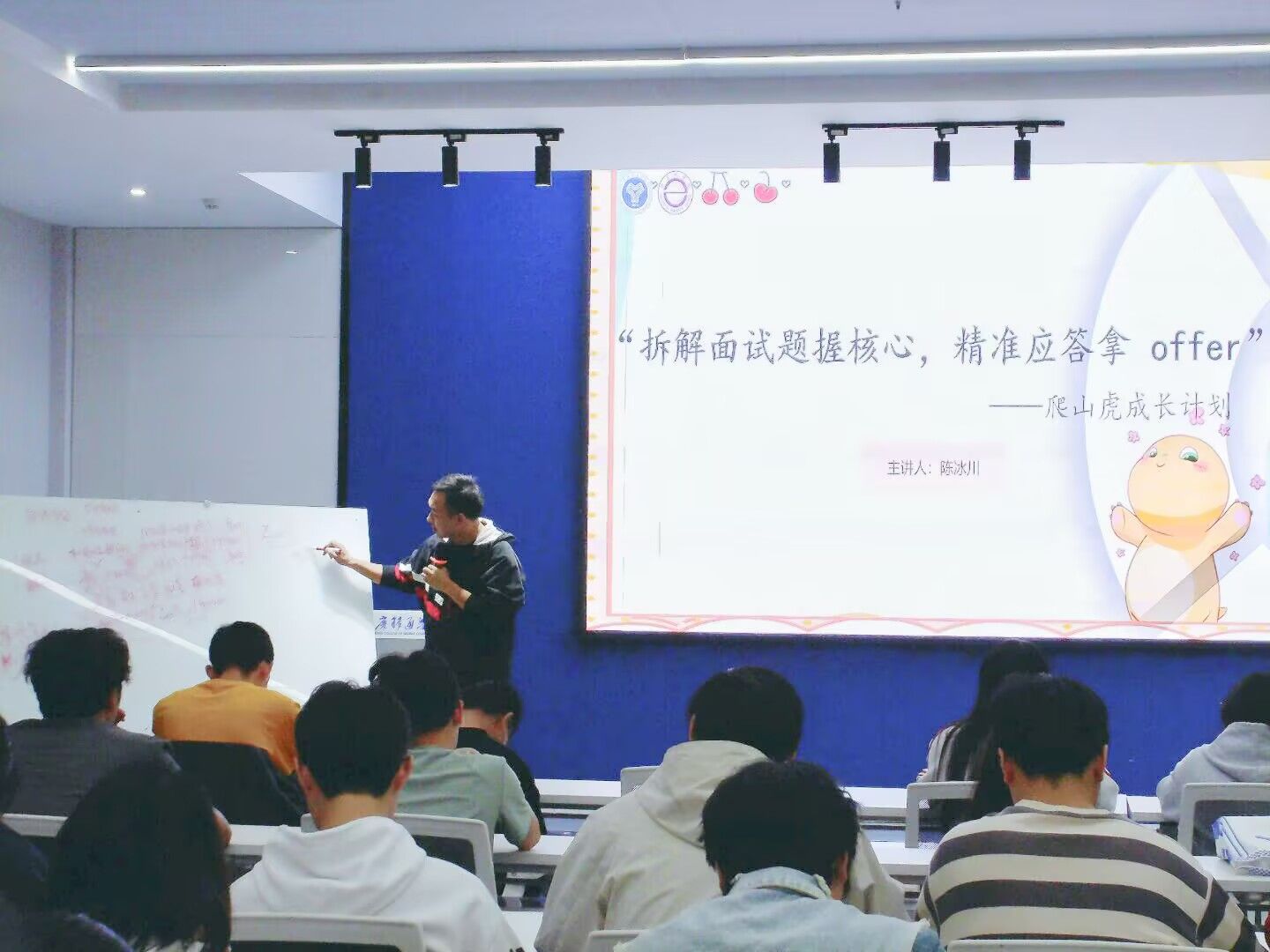2025年10月22日,綦江校区计算机学院“爬山虎成长计划”第三十一期第139期就业沙龙” 拆解面试核心,赋能求职进阶”专题活动于綦河书院·观涛多功能室开展,本次活动助力学生攻克面试难点、提升职场竞争力,特邀陈冰川老师担任主讲人,围绕面试四大核心模块展开实操性讲解。
