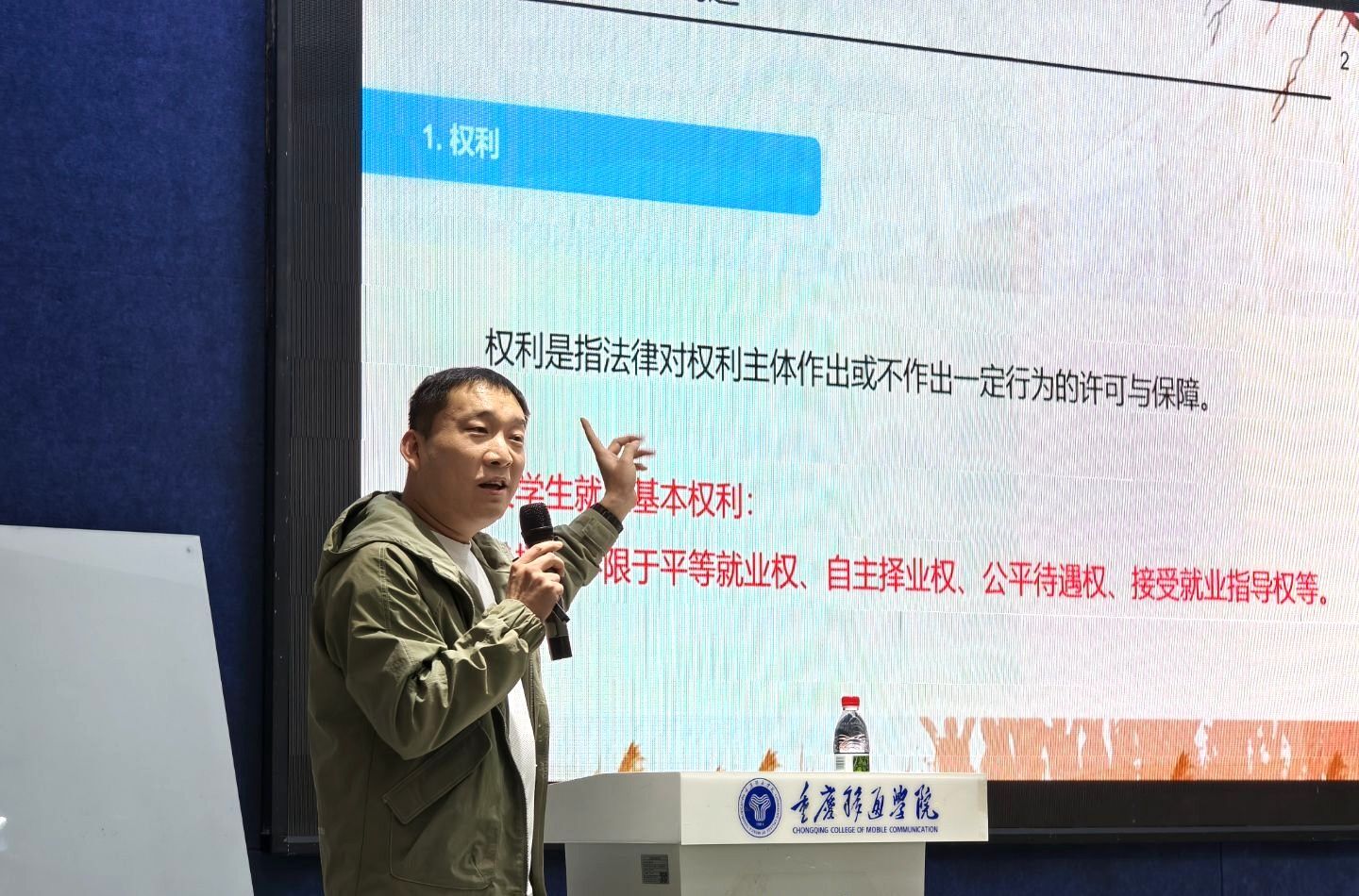 活动开始,邹健老师便以“权利与义务的平衡”破题,系统梳理了大学生就业过程中的核心法律概念。邹健老师指出,毕业生享有平等就业权、自主择业权、公平待遇权等基本权利。同时,邹老师也提醒同学们要履行实事求是介绍个人信息、遵守就业协议、保守商业秘密等义务。邹健老师强调:“权利意识与契约精神是职场人的第一课。权利是指法律对权利主体作出或不作出一定行为的许可与保障,义务是指法律要求义务主体作出或不作出一定行为的约束。”