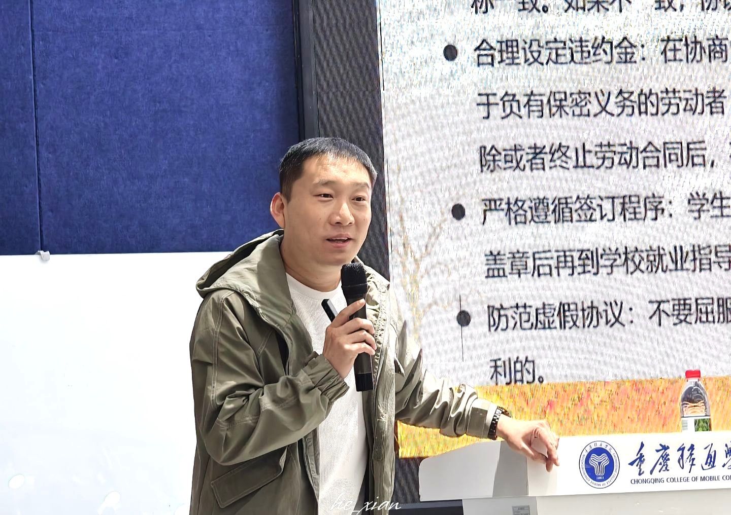 2025年10月29日下午,綦河书院观涛多功能报告厅座无虚席,活动“毕业生入职避坑,法律线守住权益——计算机学院权益维护坊第四期”在此拉开帷幕。本期主题聚焦毕业生入职避坑,法律线守住权益,特邀信息安全学院邹健老师主讲,旨在为即将步入职场的毕业生筑牢法律意识,守护职业起点公平与尊严。