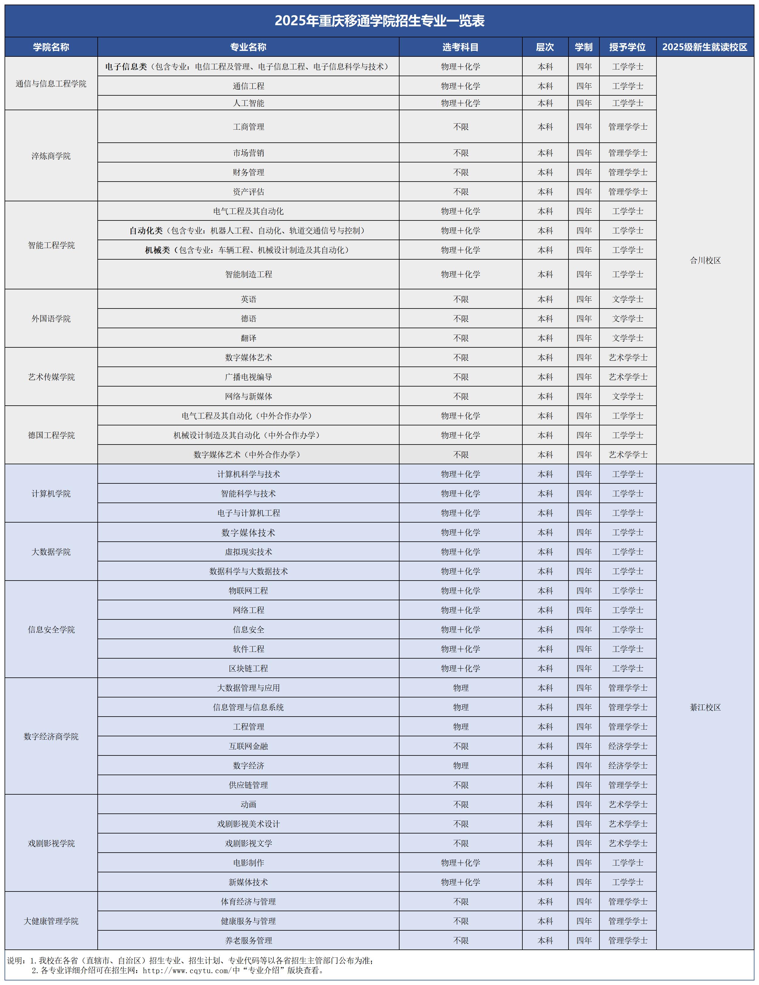 重庆移通学院 2025年重庆市高等职业教育分类考试招生章程