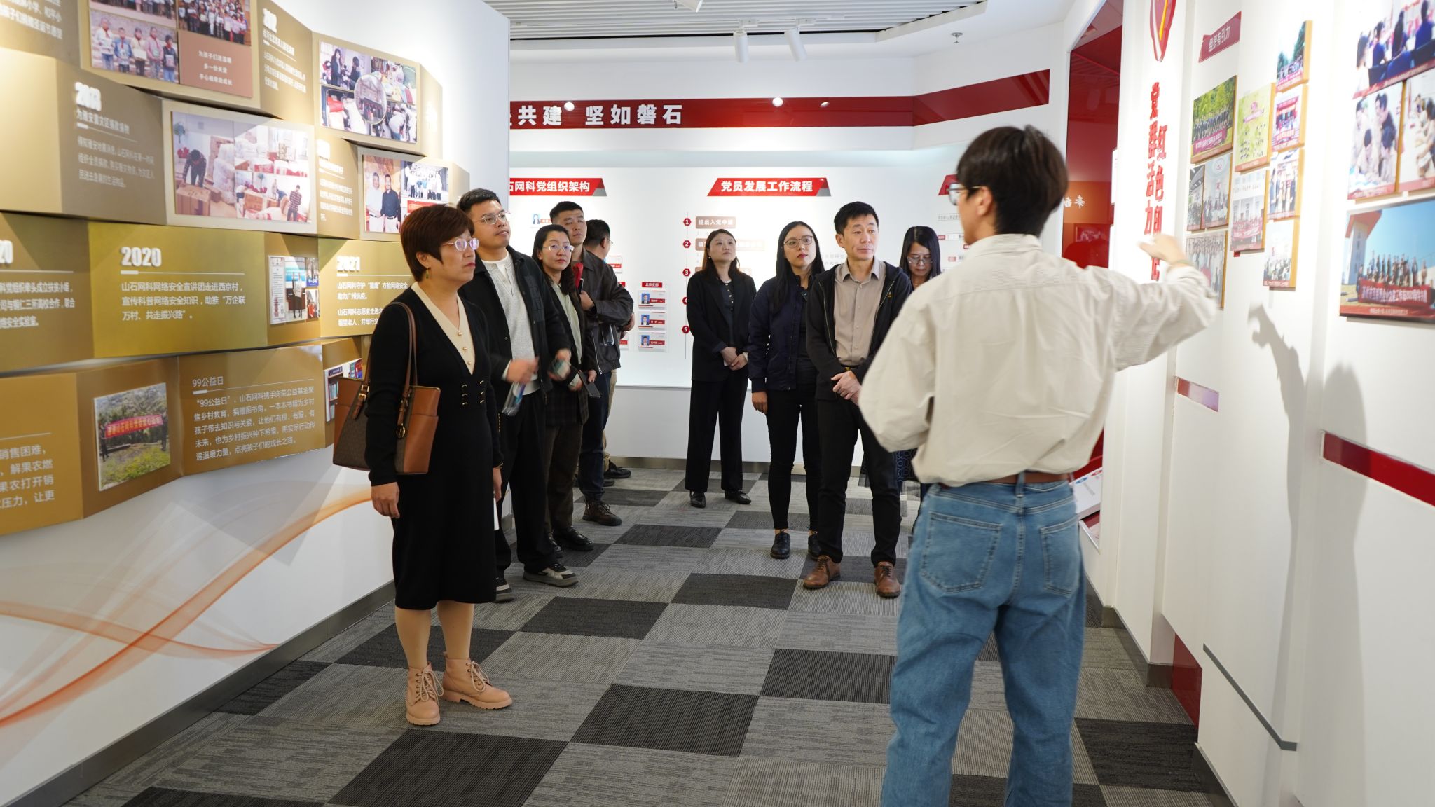 随后,山石网科党委书记、副总裁张霞带领大家参观了企业党建阵地。通过历史长廊、信仰空间、文化展厅、学习活动室等场景的实地走访,系统介绍了山石网科“网安基石,科创先锋” 的党建品牌、“五安三力”党建工作模式等。通过参观企业党委建设、员工培养、社会责任等方面的实践成果,让访企团队感受到企业稳健发展的内在动力与人文关怀。