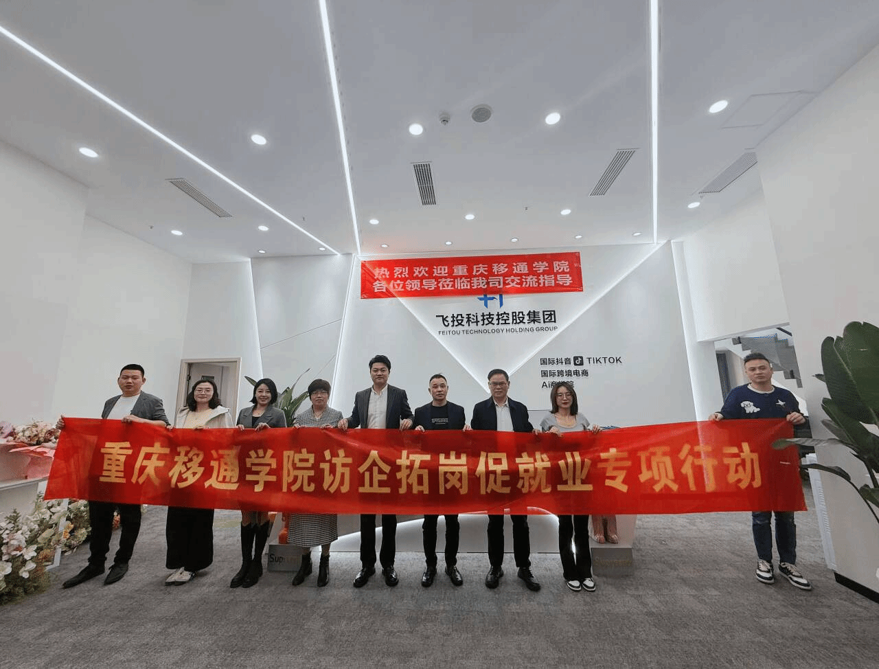 为深化校企合作,拓宽学生就业渠道,提升人才培训质量,2025年4月8日下午,重庆移通学院计算机学院院长向碧群亲自率队,携同教工副院长林泽金、就创办主任王伟孪、辅导员杨桂华前往飞投科技控股集团开展“访企拓岗促就业”专项活动。