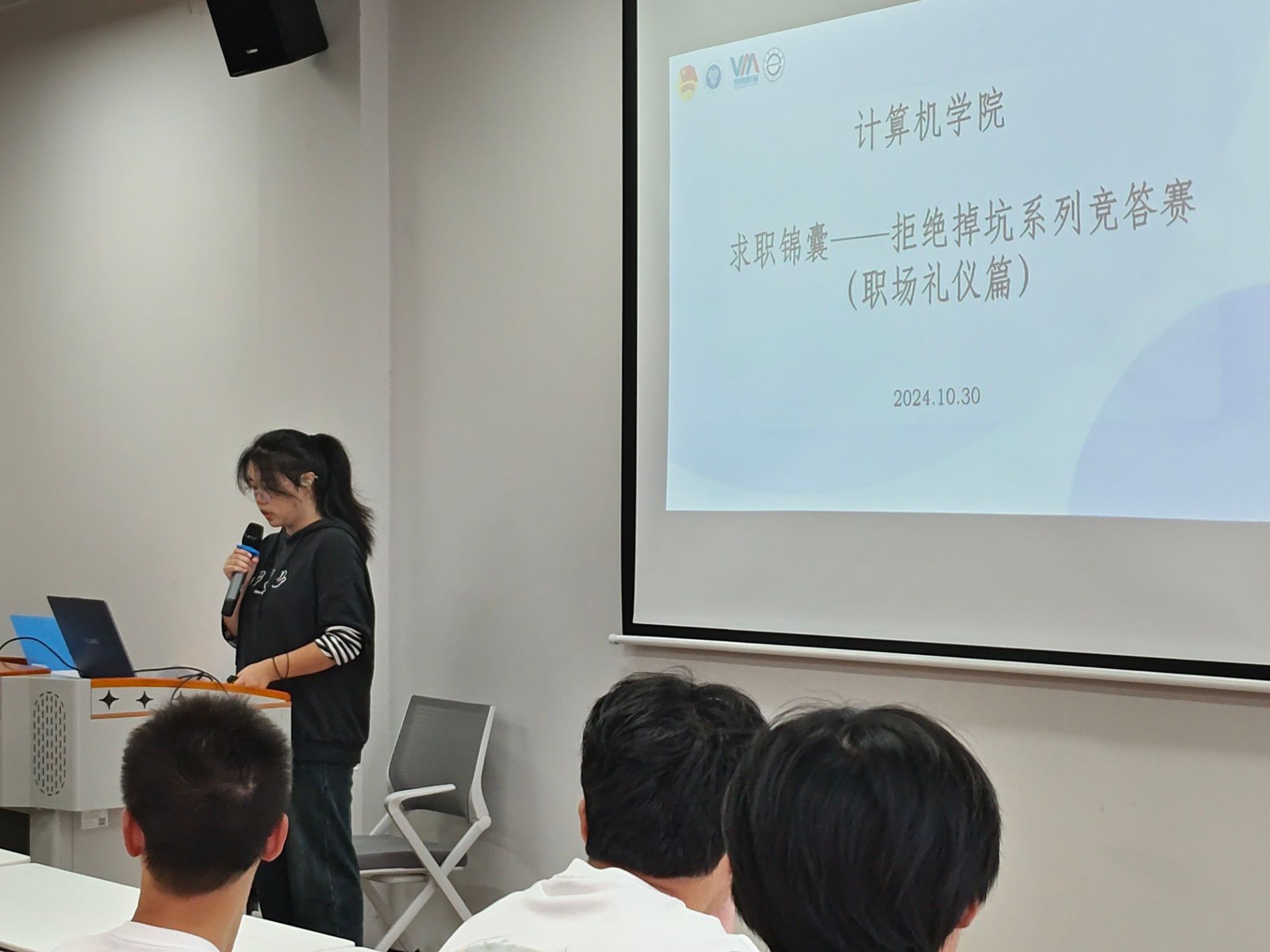 在当今社会,职场竞争越发激烈。职场礼仪成为在职场中的重要小细节,对于大学生们来说,学习和了解职场礼仪也变得更为重要。因此,为了帮助同学们了解和学习职场礼仪,就业创业助理团便以职场礼仪为主题,于2024年10月30日在玉棠书院·扎堆朋辈交流中心举办了计算。