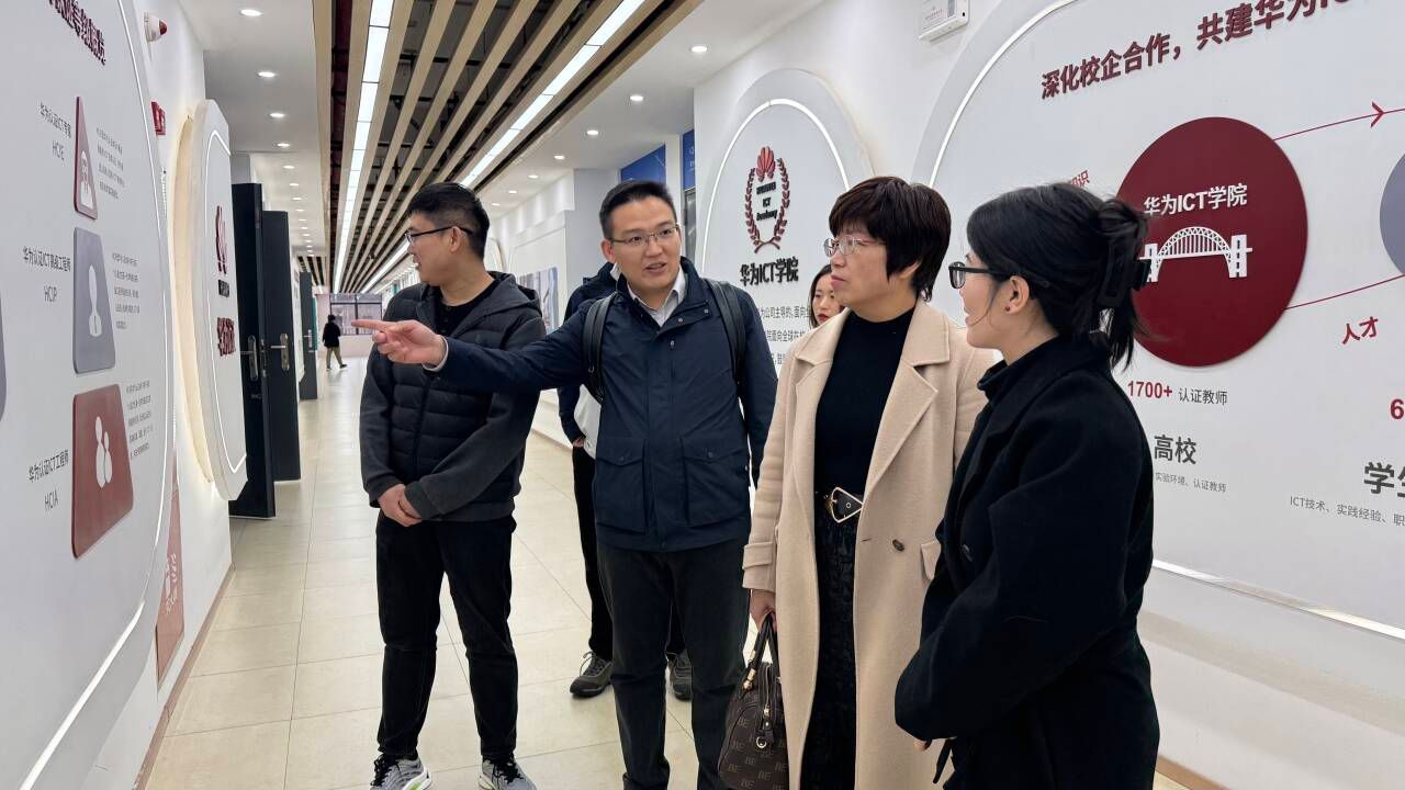 当天下午,向碧群一行人赴广东科技学院计算机学院华为ICT学院开展交流会,广东科技学院计算机学院华为ICT学院执行院长王洪元、讯方技术重庆项目部总监秦绪锋、广科运营中心运营经理林倩予以热情接待。双方围绕专业建设、促进学生就业等方面内容展开探讨。
