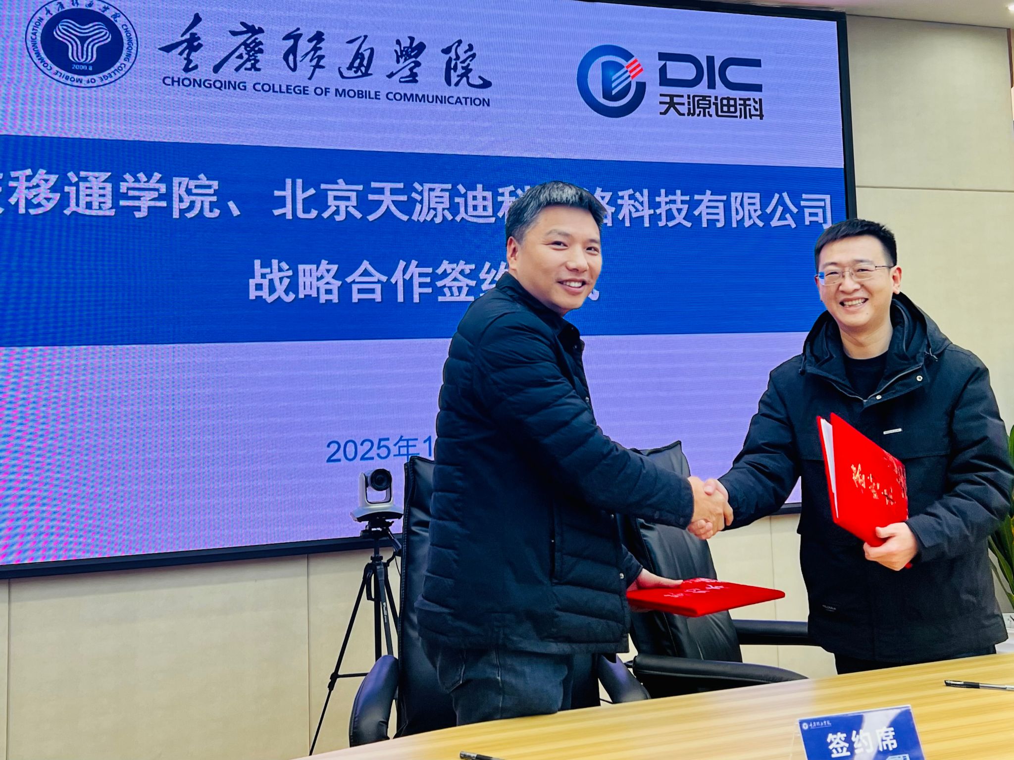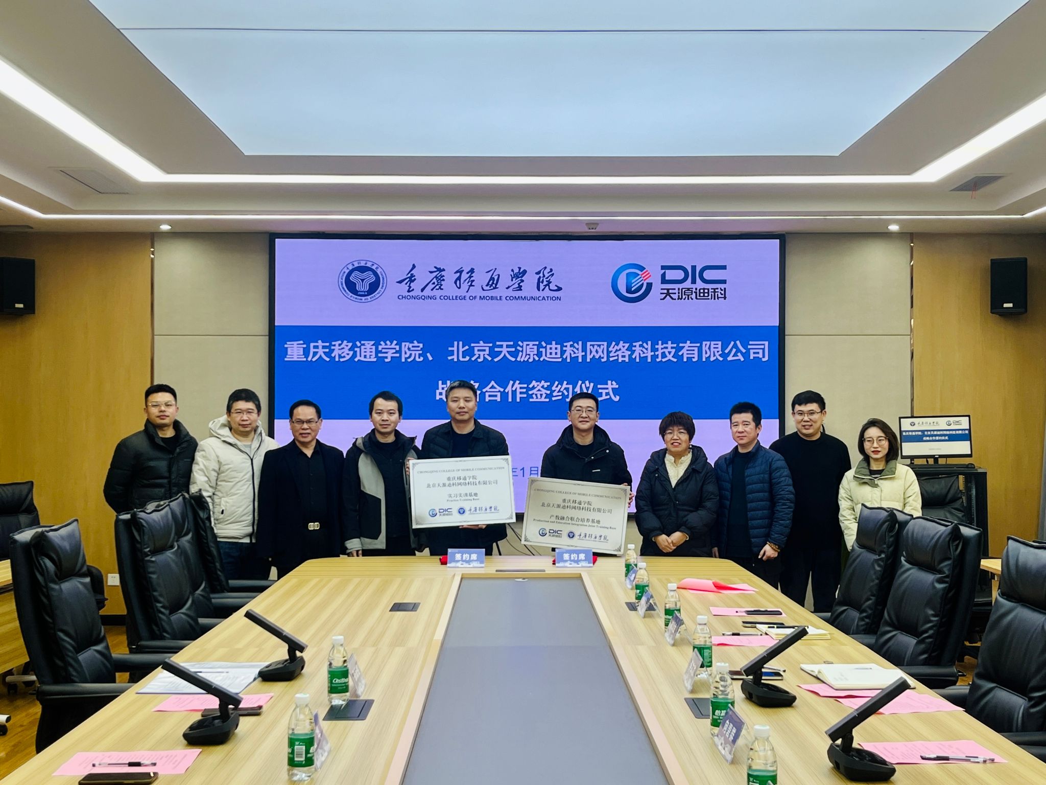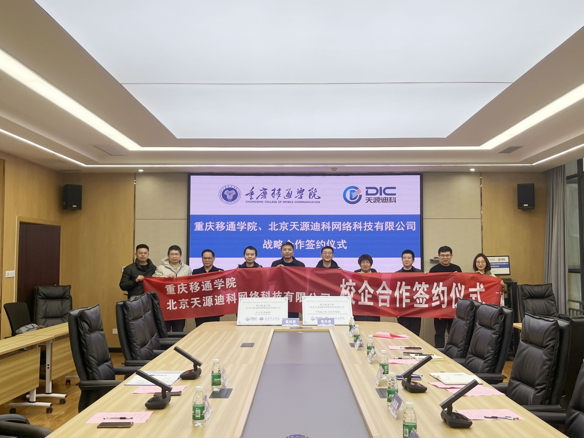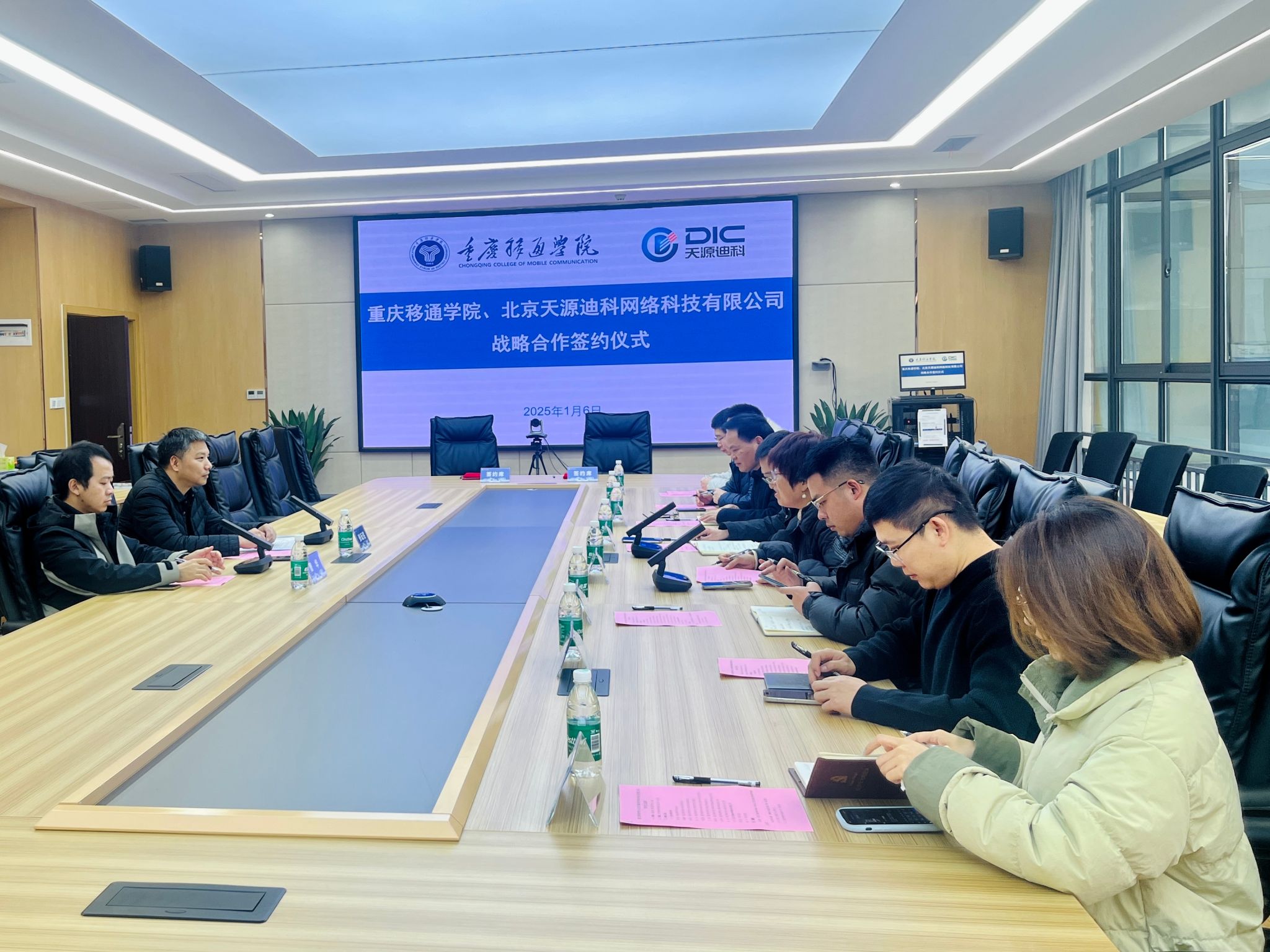 “梅须逊雪三分白,雪却输梅一段香。”2025 年 1 月 6 日下午,尽管冬日的寒冷依旧,但重庆移通学院綦江校区第一会议室却洋溢着热烈而充满希望的氛围,重庆移通学院与北京天源迪科网络科技有限公司(以下简称天源迪科公司)在此隆重举行战略合作签约仪式,双方如同寒梅与白雪,各展所长,共绘合作蓝图。