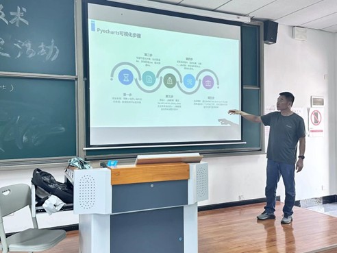 主讲人甘振韬老师以《Pyecharts赋能:开启数据呈现的创新之旅》为题,通过生动的案例演示,系统讲解了Pyecharts的核心功能。现场展示的"电商销售数据表"等教学案例,引发了参会者的浓厚兴趣。特别值得一提的是,甘老师利用的"五步教学法"——从数据导入到交互设计,为在场教师提供了清晰的教学路线图。
