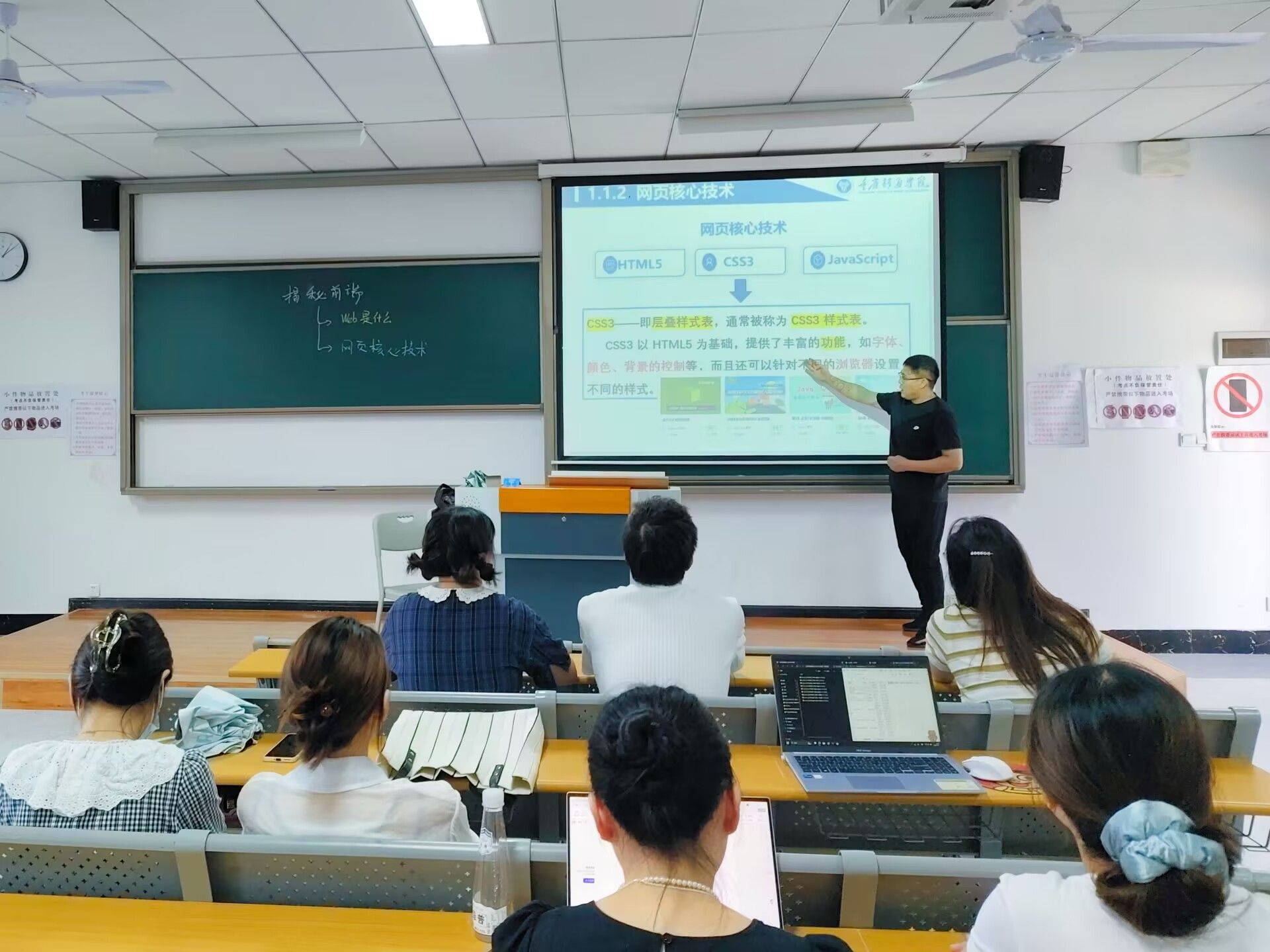 为深化教学改革、提升学生实践创新能力,计算机科学与技术教研室于2025年4月20日下午在勇者楼303智慧教室组织开展了《揭秘Web前端》主题磨课活动。本次活动由教研室主任卢星儒老师亲自主讲,通过“PPT理论讲解+实时编码演示+案例拆解互动”的创新教学模式,系统探索Web前端开发的核心技术与应用逻辑。活动现场气氛热烈,教研室教师参与度高,为教研室课程建设与人才培养提供了新思路。