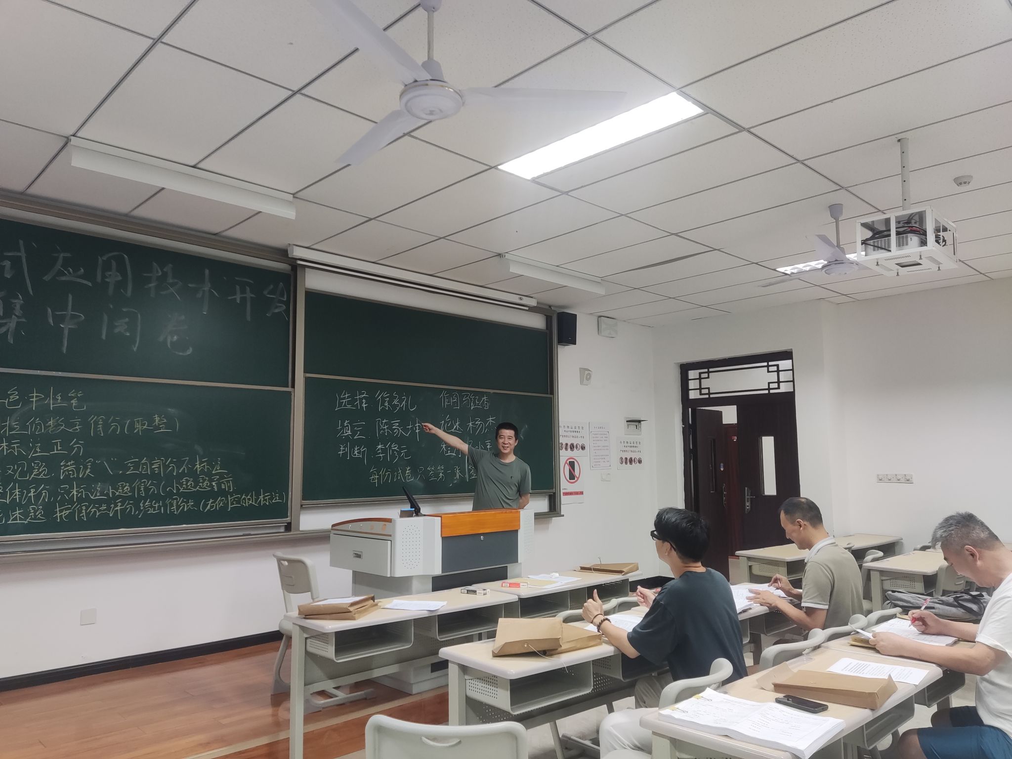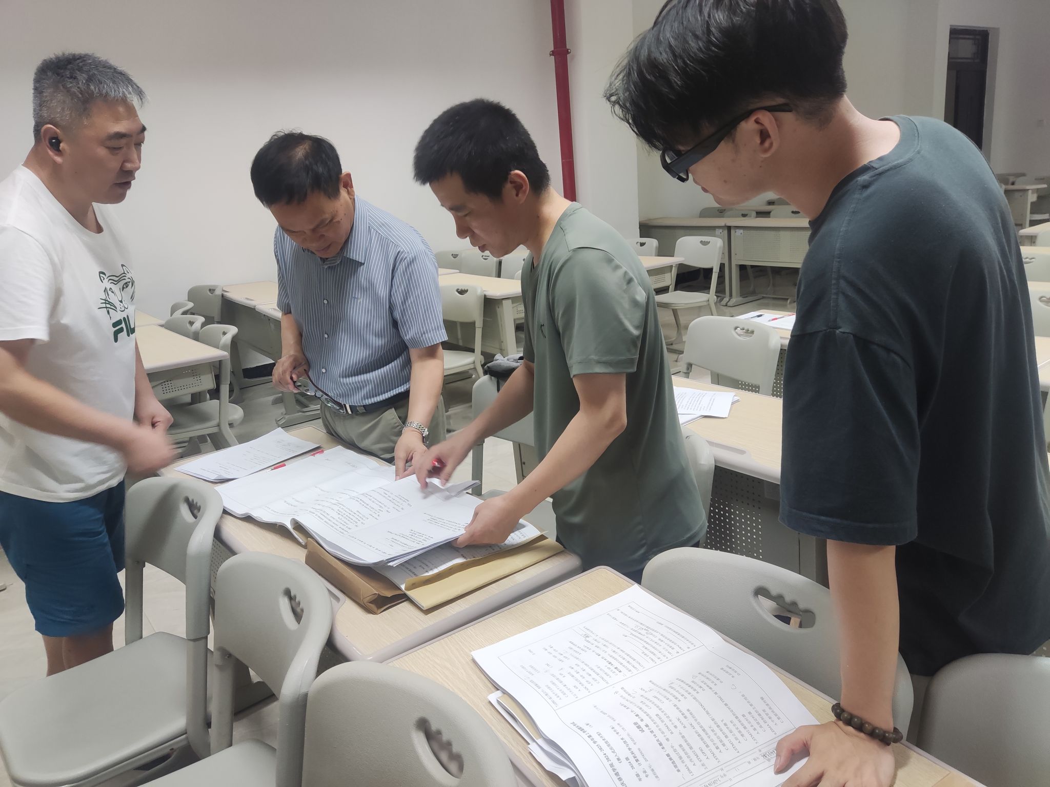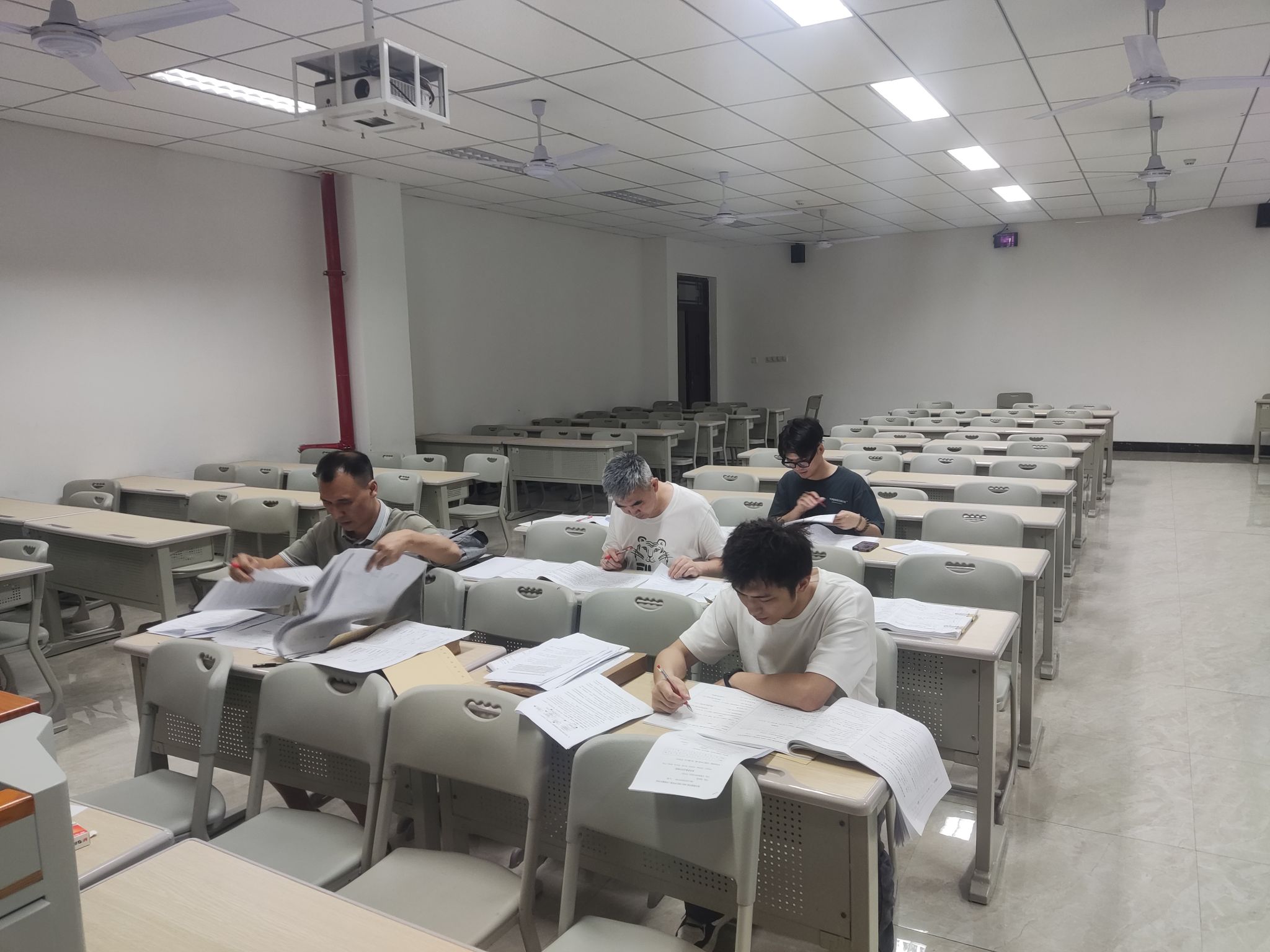 当日下午,课程组教师们抵达阅卷现场,在课程负责人徐多礼老师简单的阅卷前培训后,便有条不紊地投入到紧张的阅卷工作中。此次阅卷采用流水作业的方式,每位教师负责特定题型的批改,这不仅提高了阅卷效率,还避免多人审核同一类题目,最大限度地减少了评分误差,保障了评分的准确性与一致性。