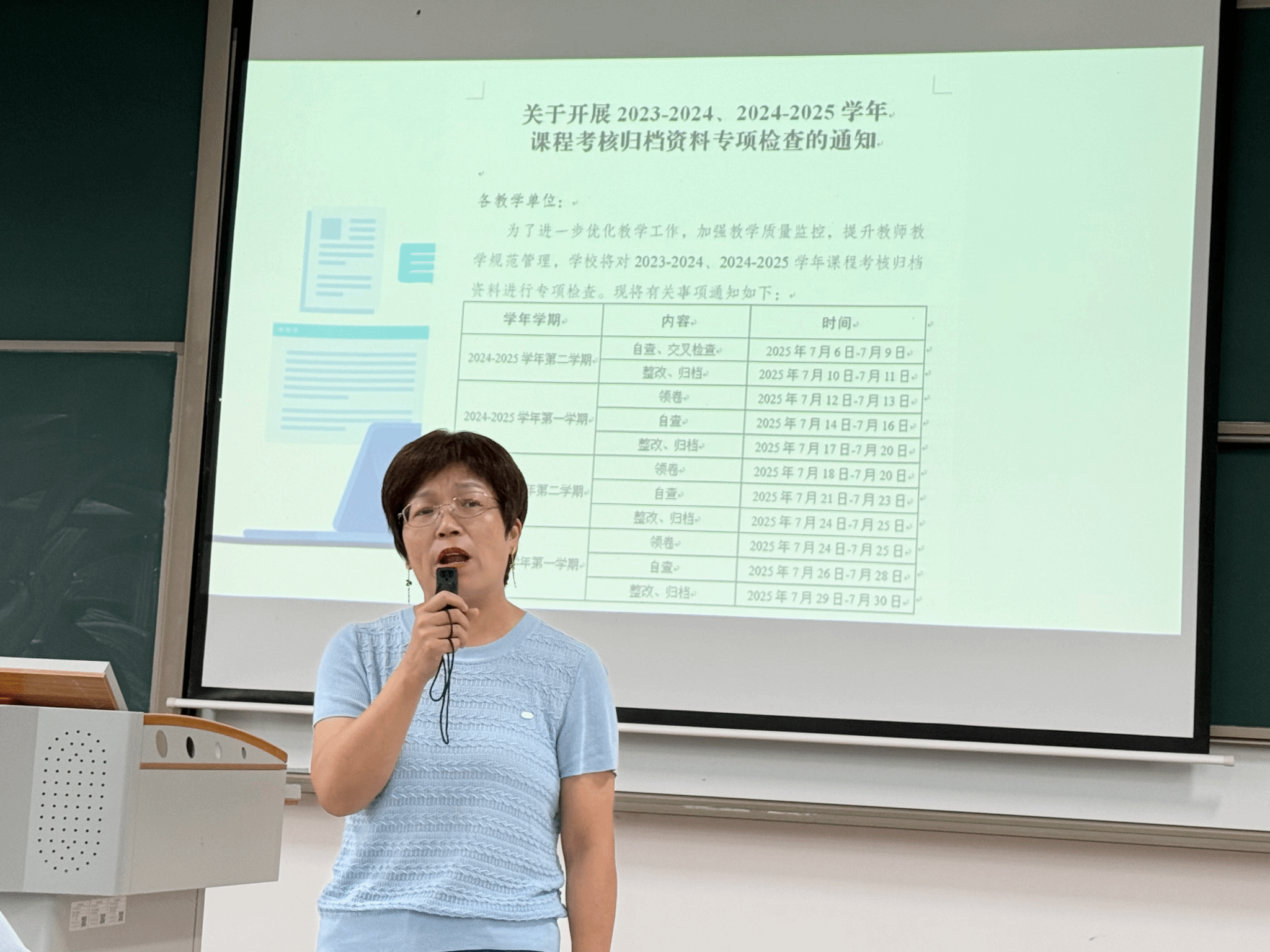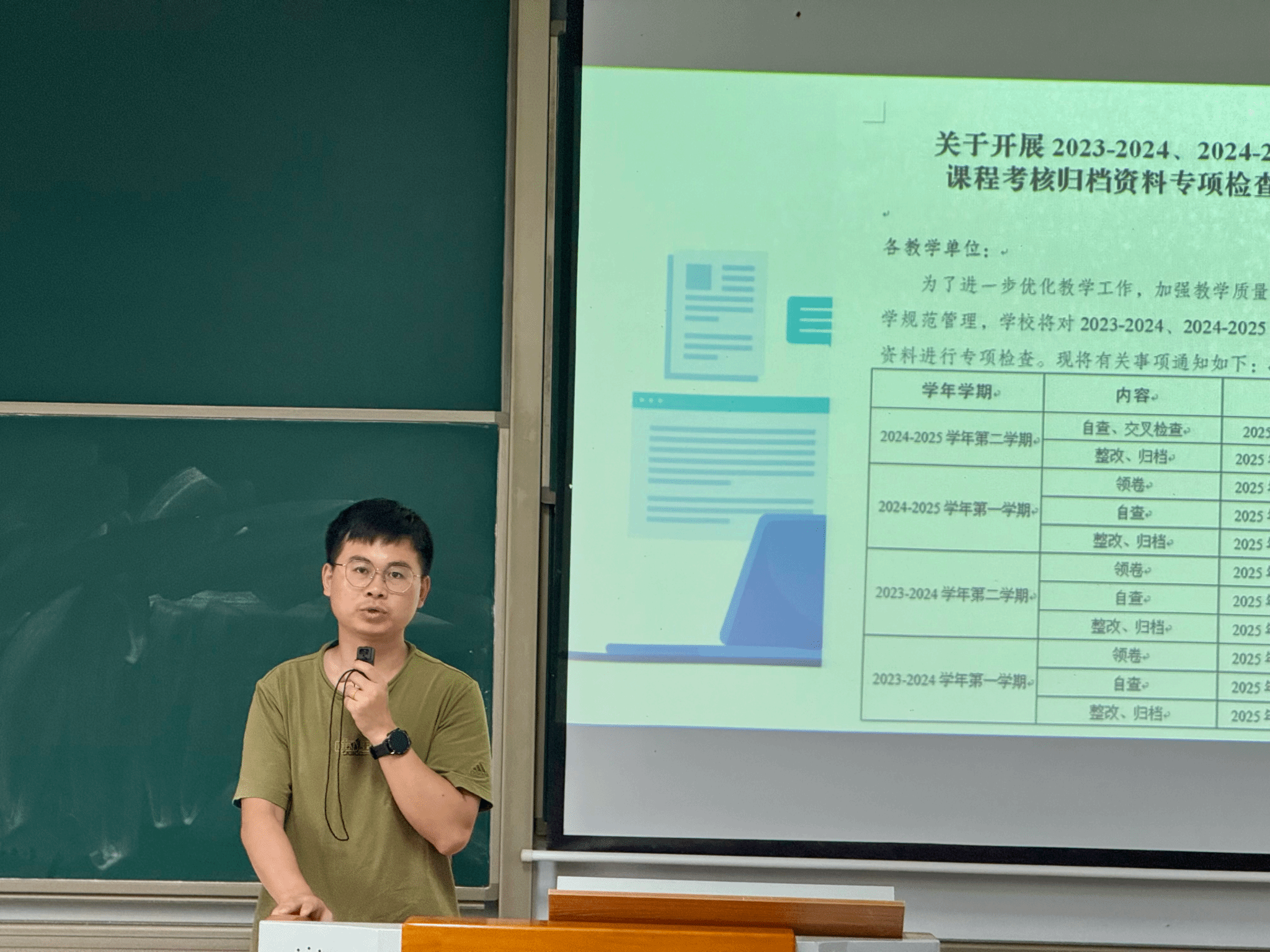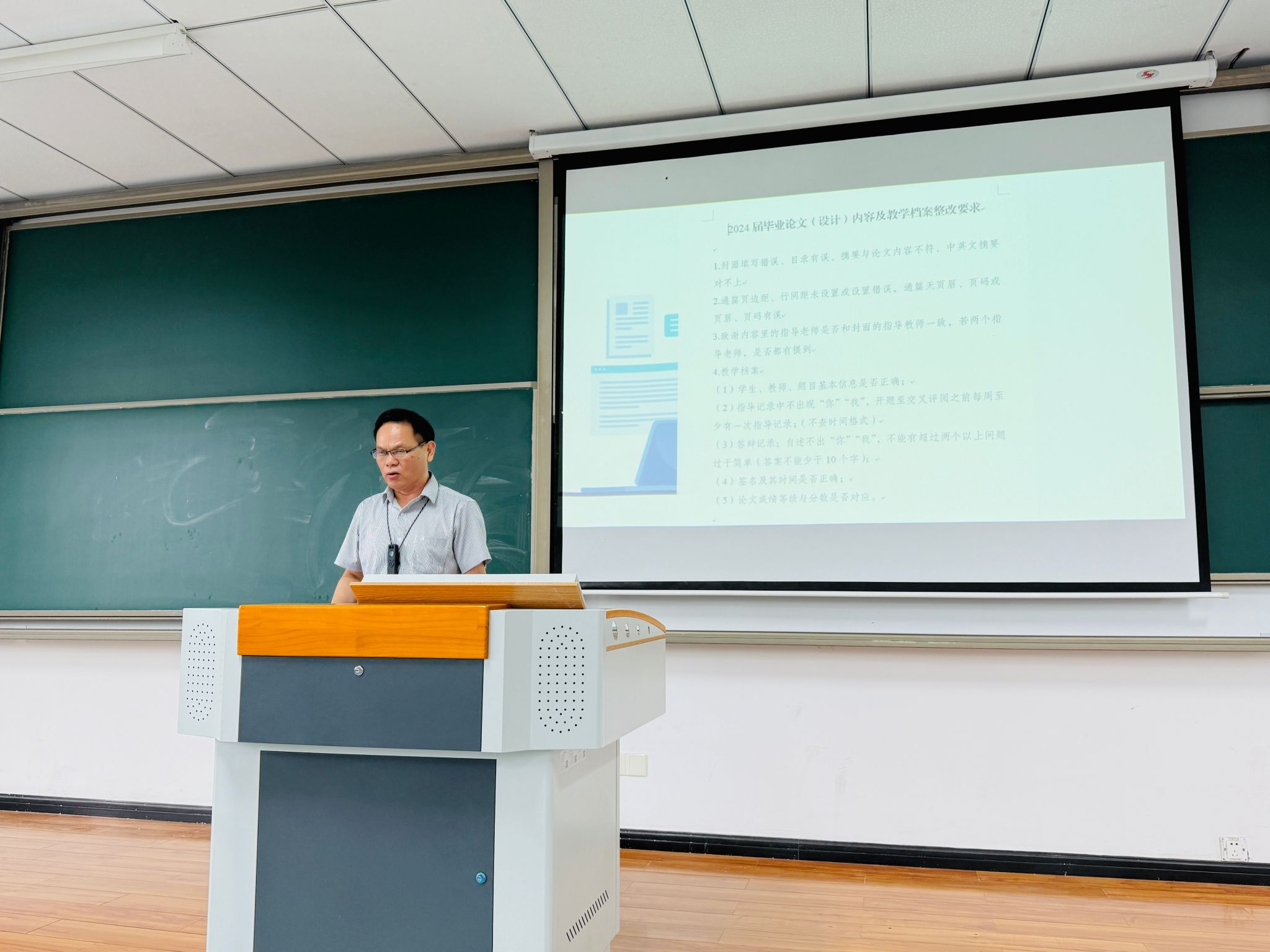 随后,教学副院长林泽金对课程考核归档资料专项检查工作进行了详细的安排部署。他强调,课程装档资料是教学工作的重要组成部分,反映了教学过程和教学质量,各教研室要严格按照学校的要求,认真开展检查工作,确保资料的完整性、准确性和规范性。同时,针对 2024 届毕业论文,林院长提出了具体的整改要求,希望指导教师和学生能够高度重视,认真修改完善,提高毕业论文的质量。
