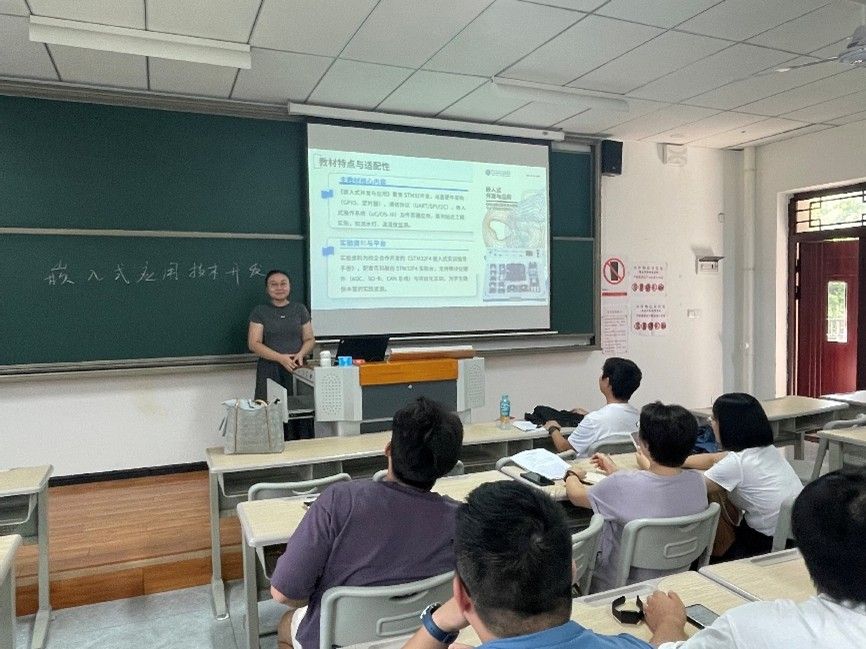嵌入式应用技术开发课程组马X杳老师聚焦课程核心内容,深入剖析所选教材的知识体系,阐述课程在智能科学专业人才培养中的基础支撑作用。针对学生在硬件操作与代码调试衔接上的薄弱点,明确STM32核心模块应用为教学重点,以“理论+实操”双路径破解嵌入式系统开发流程抽象的教学难点,教学设计紧密贴合工程型人才培养需求。