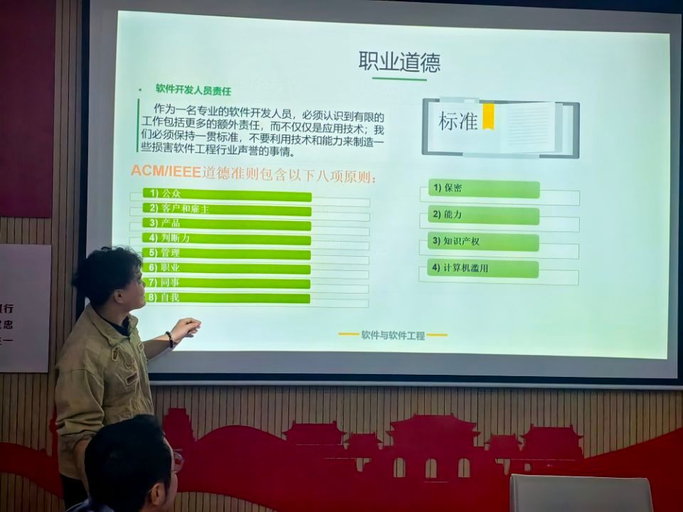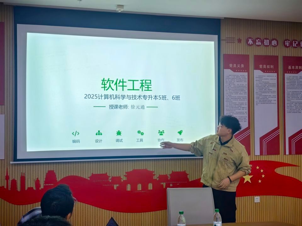 在本次磨课中,徐元通老师以“软件与软件工程”为核心教学模块,系统梳理了从软件定义、特性、分类到软件危机、工程原则及生命周期的知识脉络。他特别强调了软件工程在现代软件开发中的系统性与必要性,引导学生从“编程思维”向“工程思维”转变。