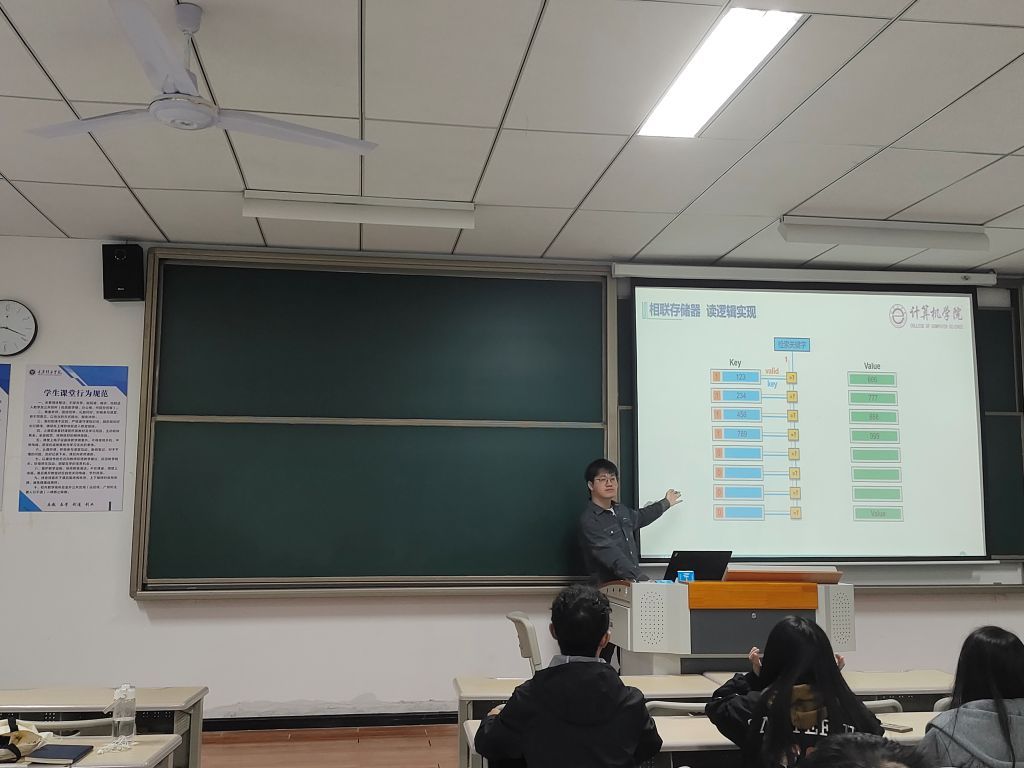 吴镜汝老师主讲《操作系统》课程,围绕进程的状态及其组成控制、线程展开讲解,详细介绍了进程的就绪、运行、阻塞三种基本状态及转换条件,进程控制块的组成要素,同时对比分析了进程与线程的区别与联系,教学内容条理分明,重难点突出。何松伟老师讲授《计算机组成原理》中的存储系统,重点剖析了数据查找(如何判断数据在cache中)、地址映射(主存数据如何放置到cache行中)、替换策略(cache满后如何处理)、写入策略(如何保证cache与memory的一致性)四部分内容,对知识点的讲解深入浅出,逻辑性强。
