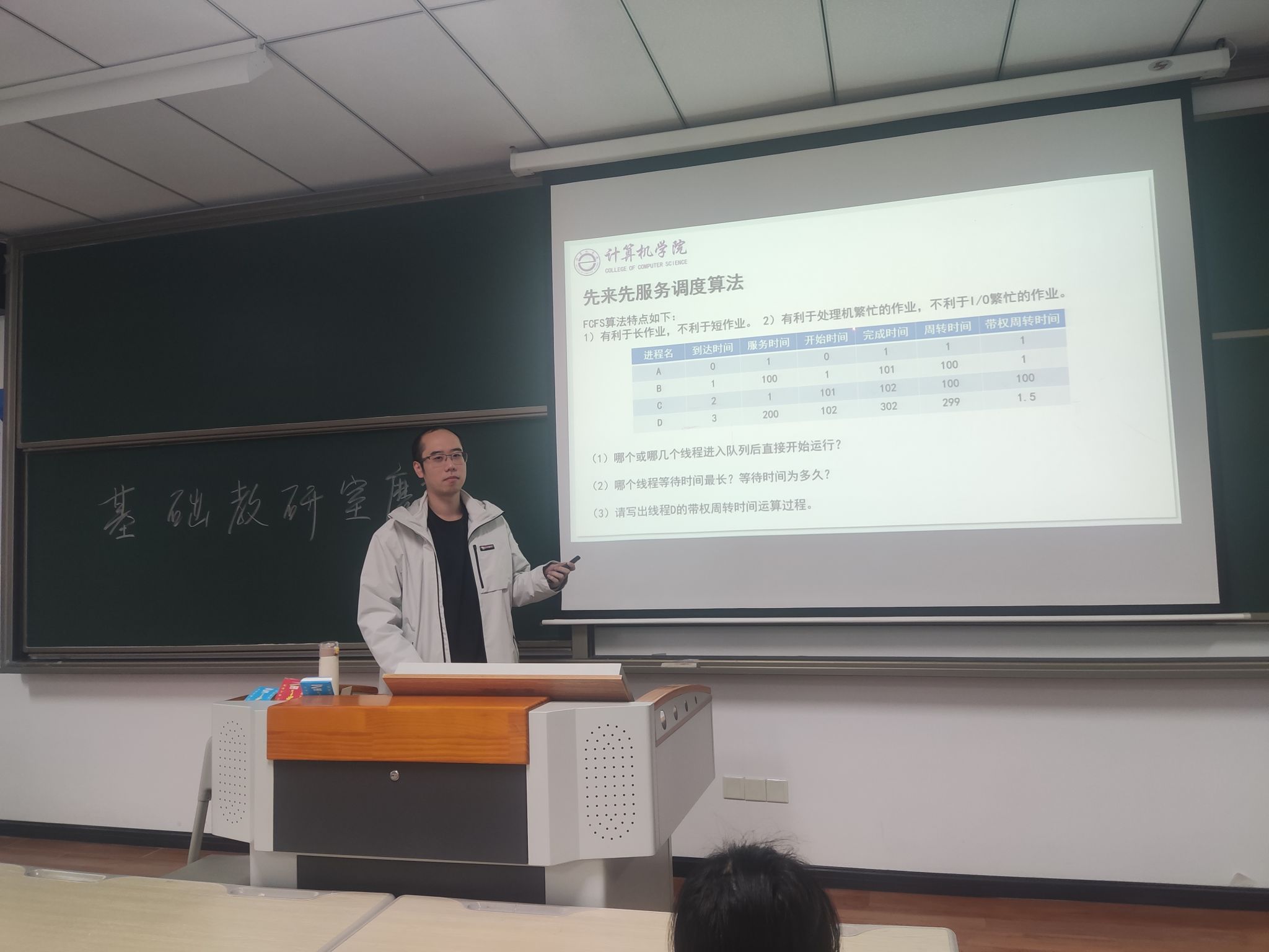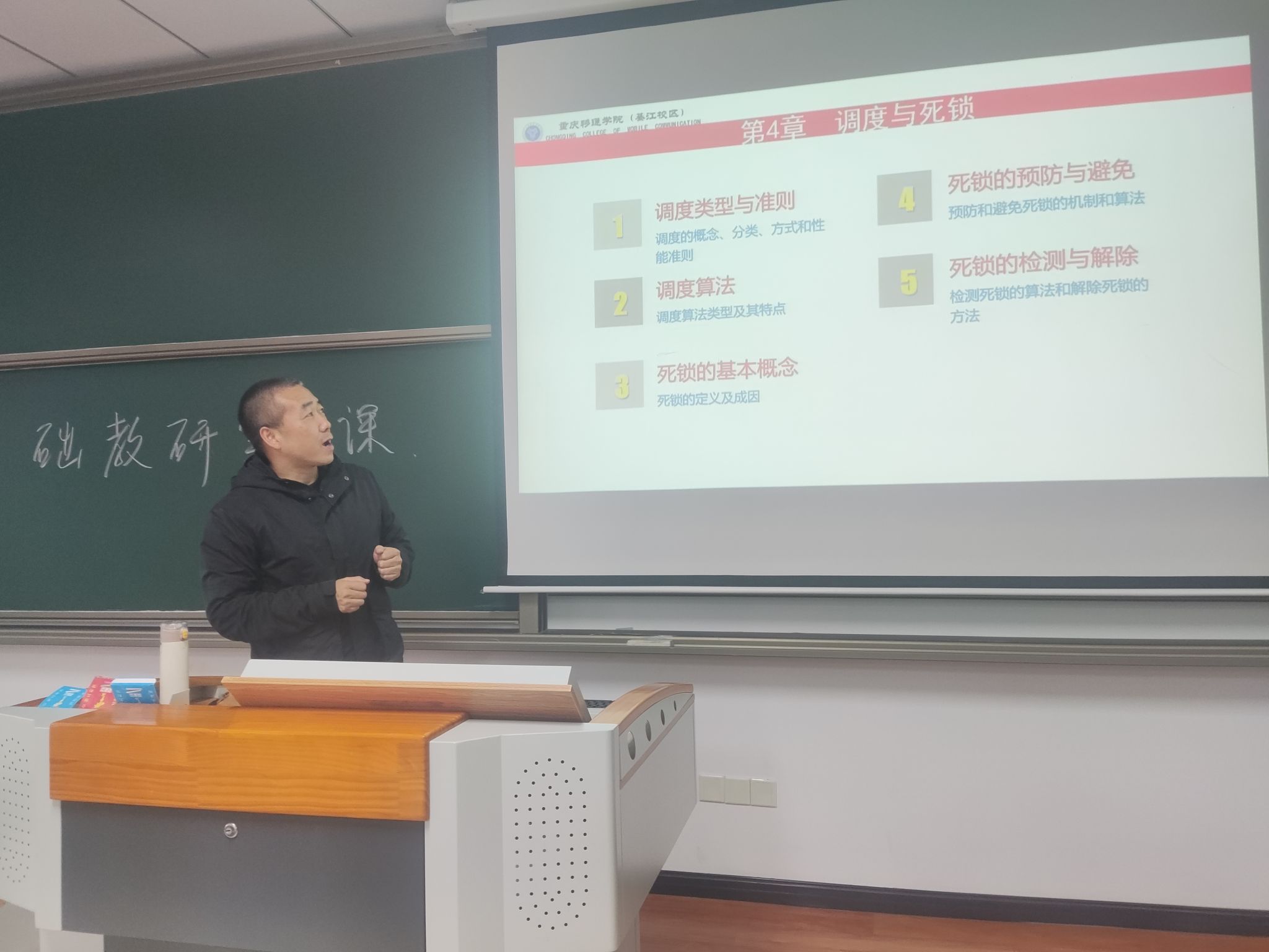 活动在热烈而严谨的氛围中拉开帷幕。首先,张翼捷老师就其主讲的《操作系统》课程进行了分享。张老师以“进程同步与通信”这一核心难点为切入点,通过清晰的逻辑推导和生动的生产者-消费者问题案例,将抽象的理论知识具体化、形象化。他巧妙设计的互动环节和层层递进的问题链,引发了在场老师的深入思考与热烈讨论。