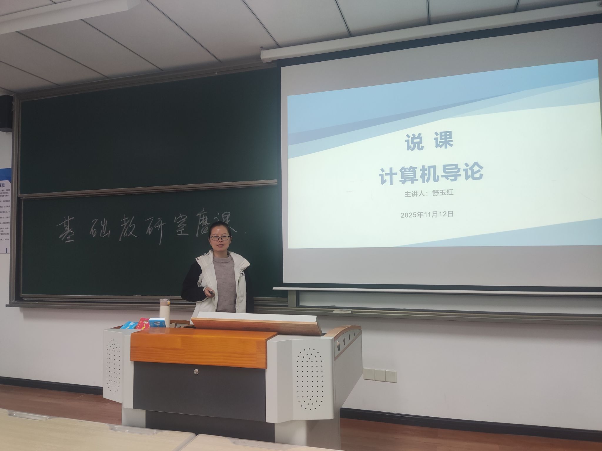 紧接着,舒玉红老师带来了《计算机导论》的课程展示。舒老师从大一新生的认知特点出发,以“计算机系统的层次结构”为主题,用通俗易懂的语言和贴近生活的比喻,化繁为简,引导学生构建对计算机科学的宏观认知框架。其富有亲和力的讲授风格和精心准备的多媒体素材,充分体现了该课程作为专业启蒙的引导作用。