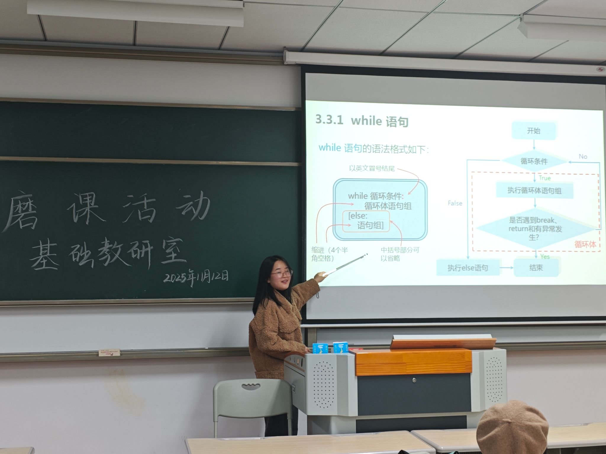 为持续夯实本科教学根基,提升程序设计类基础课程的教学质量,11月12日周三下午,计算机学院基础教研室在前期磨课活动的基础上,再次于勇者楼203举行了精彩纷呈的磨课研讨。本次活动由王苏越与王靖源两位老师主讲,分别就《Python程序设计》与《程序设计基础》两门核心课程进行了深入的教学展示与交流。