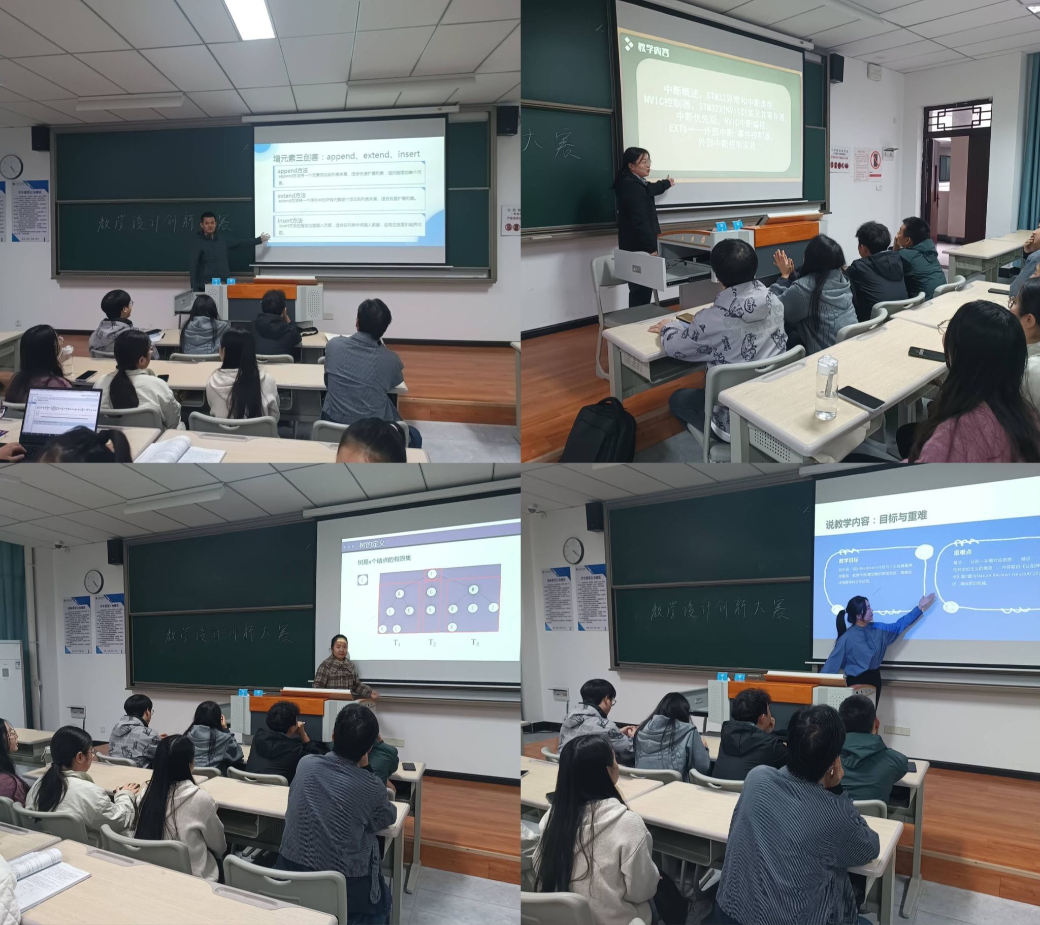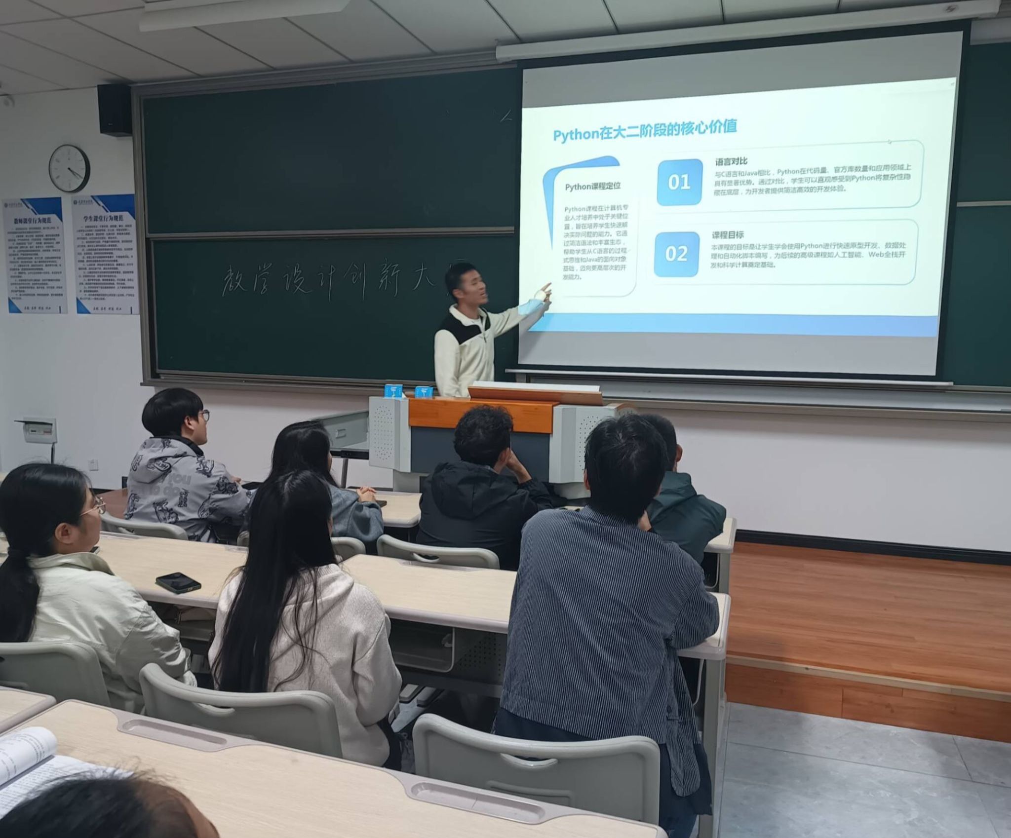 参赛教师们各展所长,亮点纷呈。陈雪媛老师以《智能科学导论》中的“机器学习算法”为主题,设计了“案例导入-问题驱动-小组探究-成果展示”的递进式教学流程,将抽象的算法原理与实际应用场景相结合,有效降低了学生的理解难度;李余老师聚焦《数据结构》课程,创新引入“虚拟仿真实验”教学环节,通过交互式操作让学生直观感受数据存储与运算过程,极大提升了教学的趣味性和实践性;王浩强老师则在《Python程序设计》的教学设计中,融入“项目式教学”理念,以真实的智能项目开发为导向,引导学生在实践中掌握编程技能,充分体现了“以学生为中心”的教学理念。