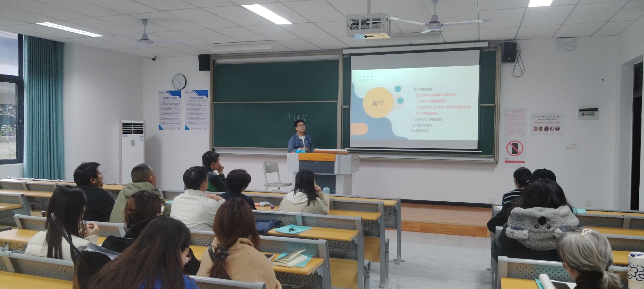 黄世彬老师聚焦《嵌入式应用技术开发》课程,深入讲解了“中断”技术的原理与应用。他结合具体的硬件平台和实际案例,将中断处理流程阐述得透彻明了,展现了理论紧密联系实践的鲜明特色。杨杰老师给出了诚恳的指导。