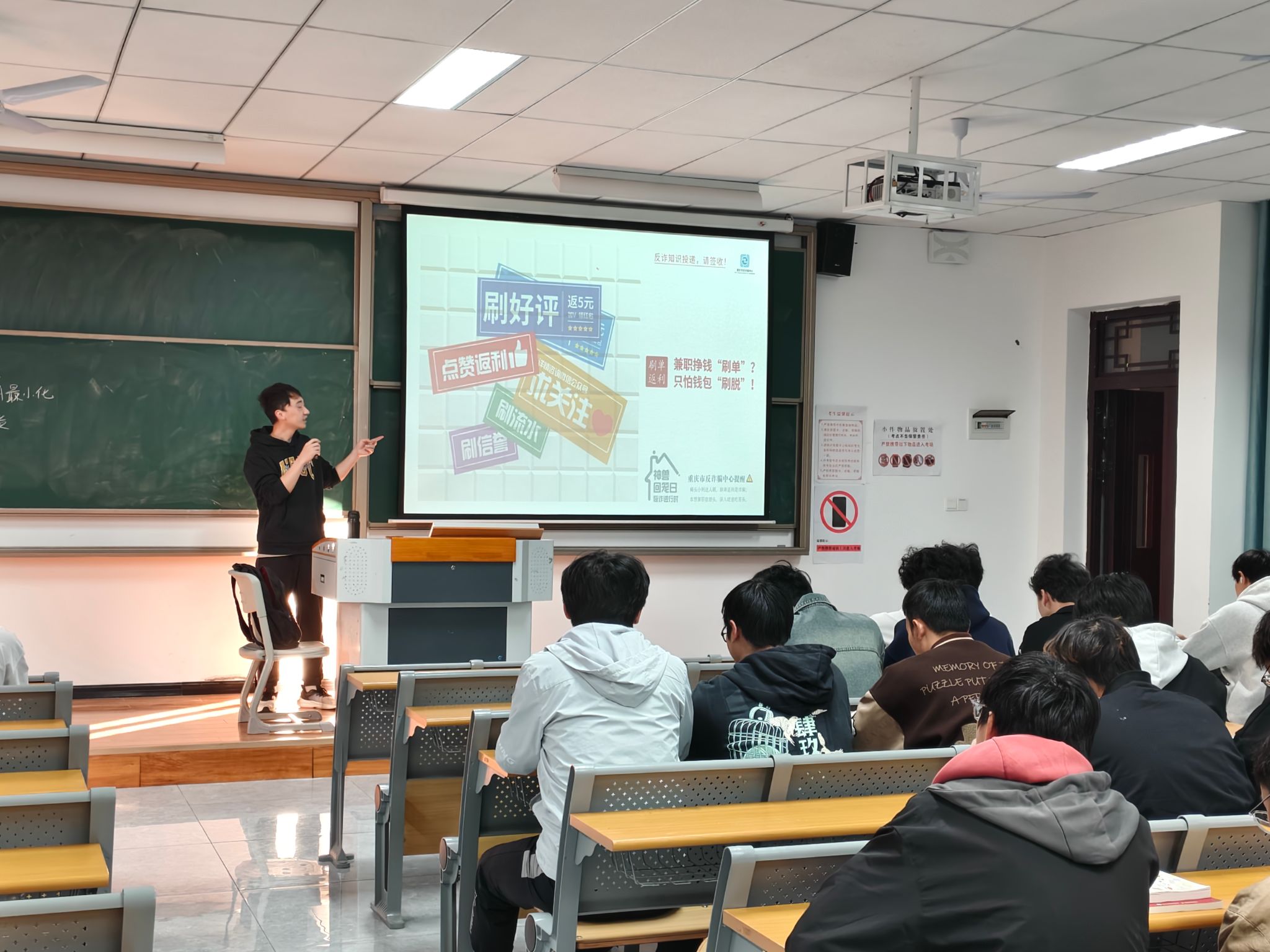 与此同时,计算机科学与技术教研室的老师们在第六教学周,利用课间时间,将反诈课堂搬进每个班级,通过发放反诈宣传图片、播放反诈视频、组织互动问答等形式,老师们向学生普及了常见的诈骗套路及防范技巧,学生们积极参与讨论,纷纷表示受益匪浅。