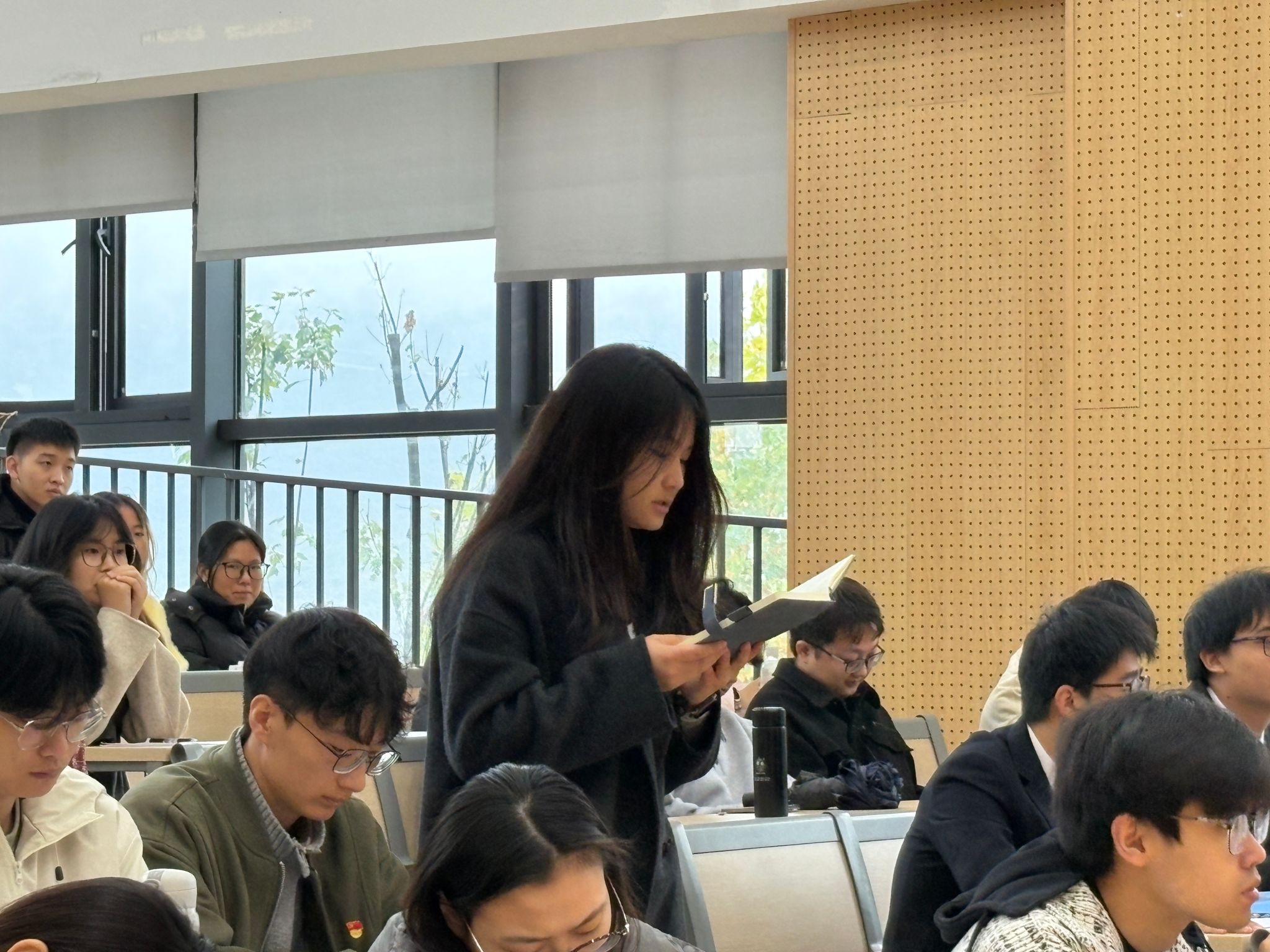 在专题学习环节,戴小梅同志带领大家学习了《中共中央关于制定国民经济和社会发展第十五个五年规划的建议》等重要文件。她从总论部分对发展成就与总体要求的系统阐述,讲到分论部分各领域的战略任务部署,再到坚持党中央集中统一领导的根本保障,使在场同学深刻领会了其时代分量与实践价值。