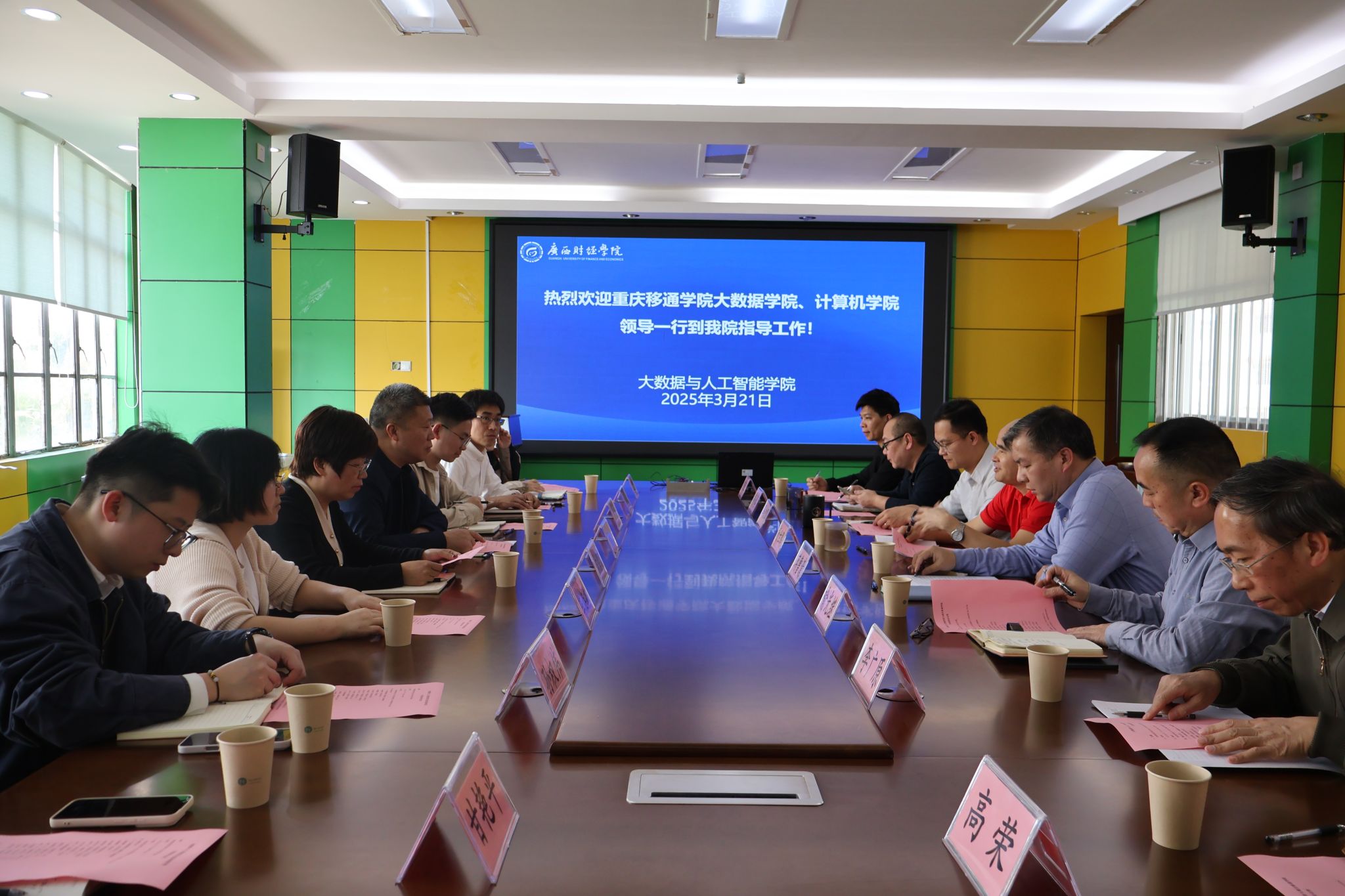 次日,活动聚焦学科发展与党建协同,赴南宁学院人工智能与软件学院、广西财经学院大数据与人工智能学院开展交流。围绕“党建+团建”“制度完善”“学生思想教育”等议题,两校教师深入探讨党建引领下的教学管理创新。南宁学院“校企协同育人”模式,启发了教师党员在服务区域数字经济中的使命担当;广西财经学院以“党团共建”推动学生创新创业的案例,则为大数据与计算机学科融入实践育人提供了新思路。交流中,党员们一致认为,必须将党的二十大精神与“两会”精神融入课堂教学,以“双师双能”队伍建设为抓手,推动学科交叉创新,为“双高计划”建设和区域产业升级注入活力。