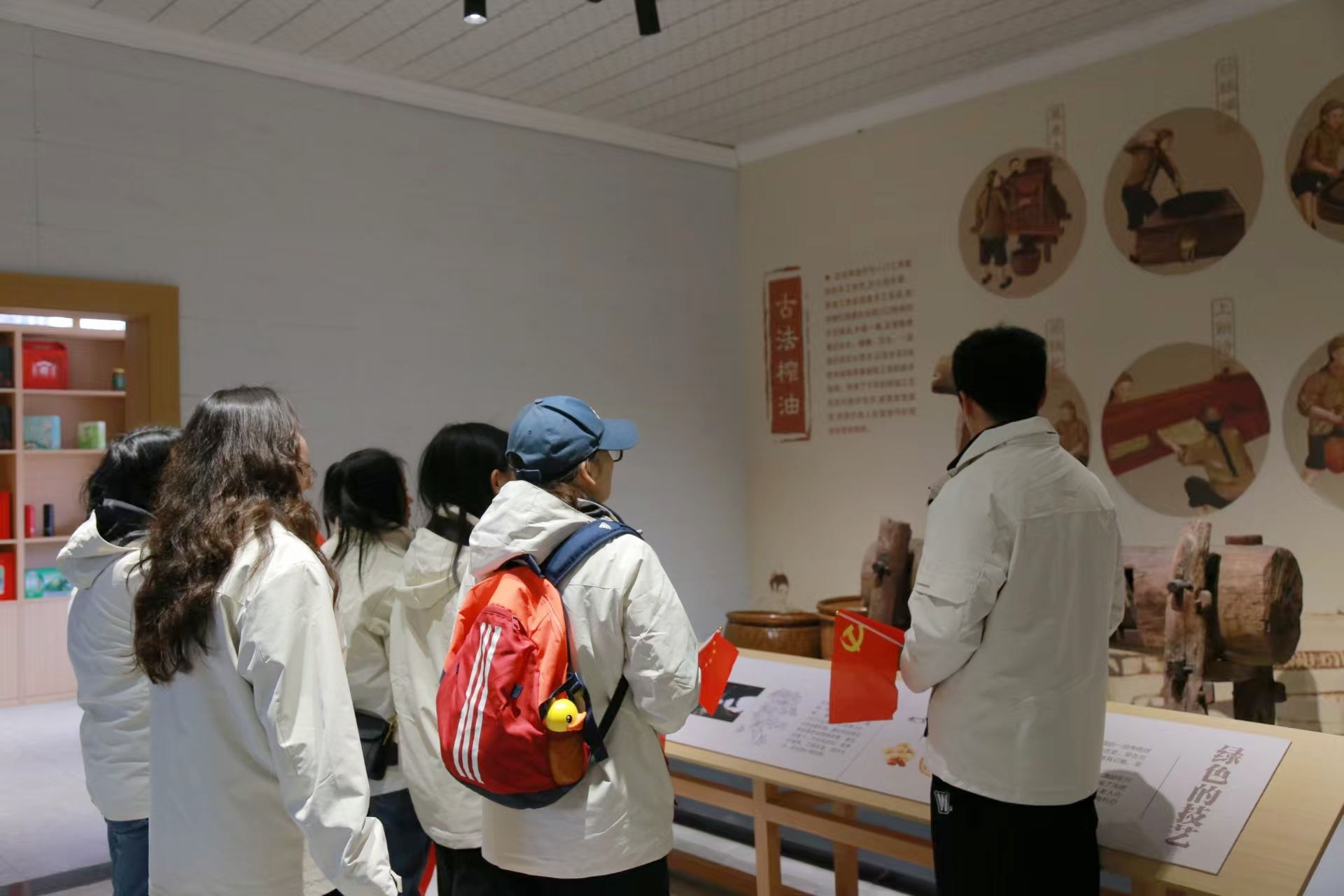 离开红一军团二团指挥部旧址后,党员们前往村民委员会旁的羊古僚油坊。如今的羊古僚榨油坊不仅是一处承载历史记忆的场所,更是羊角村坚持以红色文化带动乡村振兴的关键项目,它联动渝黔 5 村发展集体经济,年均集体经济收入达 12 万,为乡村经济发展注入强劲动力。展馆由红色的沃土、黄色的花乡、金色的道路、古法榨油展示、现代榨油参观、自助榨油体验、产品展示展销等七个部分组成。