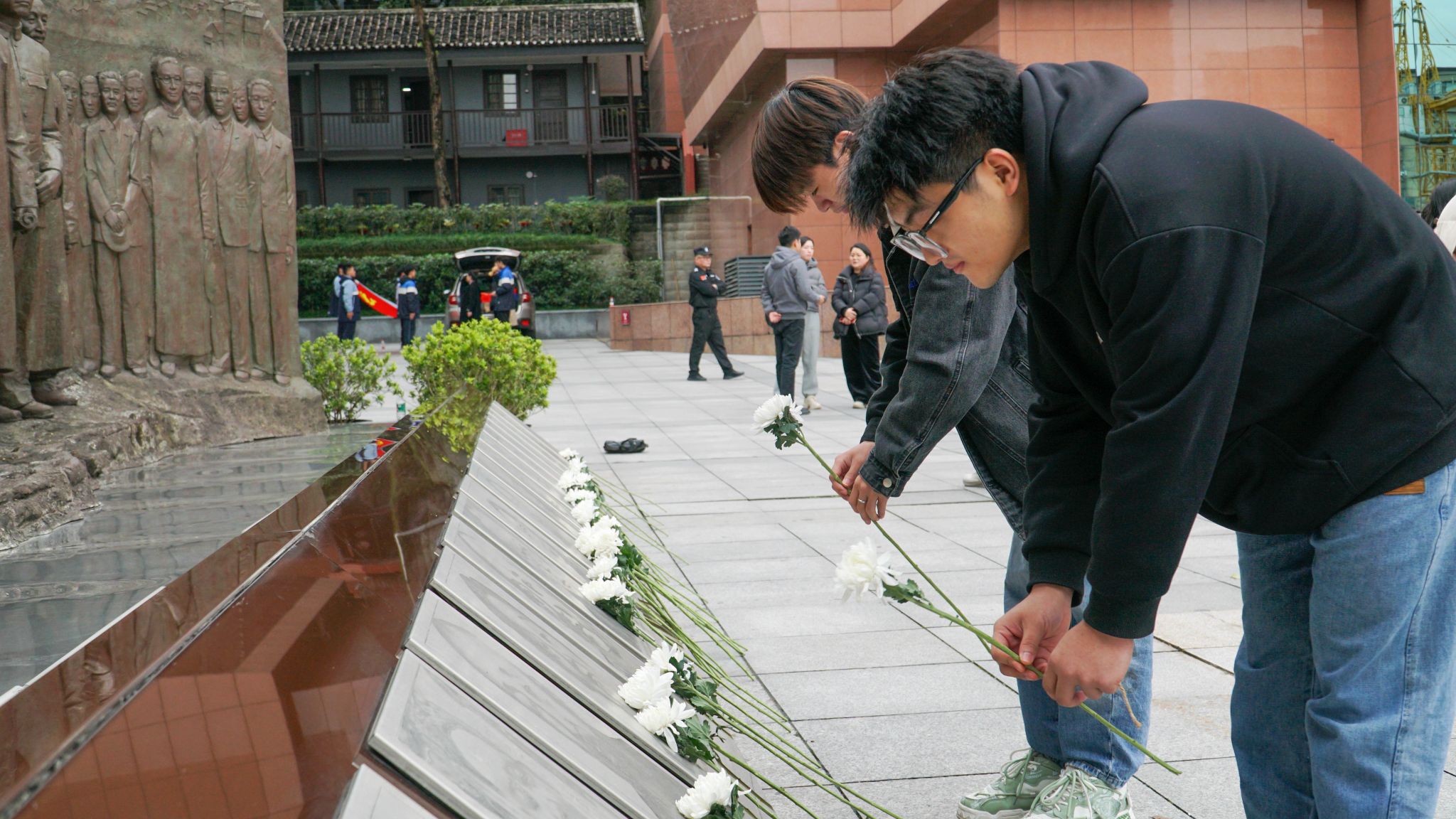 2024年是重庆大轰炸75周年,为缅怀历史、警醒未来,特别设置了献花环节。16时20分,全体党员在纪念馆前肃立,向革命先烈敬献鲜花,表达对他们的深切缅怀和崇高敬意。