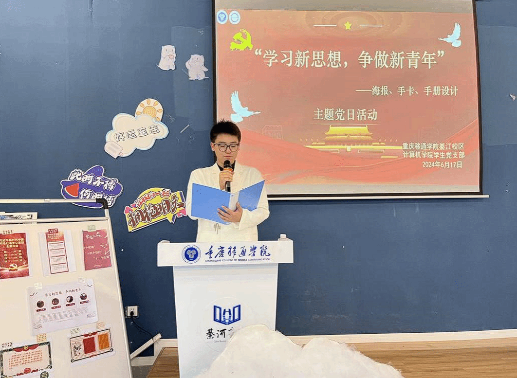 人无精神不立,国无精神不强。为庆祝中国共产党成立103周年,弘扬伟大建党精神,激励学生党员谨记先辈嘱托,加强实践活动,进一步增强我院学生党员凝聚力和战斗力,计算机学院学生党支部于2024年6月17日在綦河书院东篱故事茶馆开展“学习新思想,争做新青年”海报、手卡、手册设计大赛主题党日活动。旨在通过手工制作的形式,加强党员实践活动,更好的传承红色文化基因。