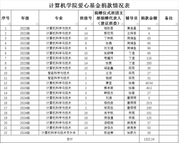 经过全院师生的共同努力,计算机学院在此次爱心基金募捐活动中取得了显著成果,总共募捐到1322.24元。这笔善款将汇入重庆移通学院爱心基金,为有需要的师生提供及时有效的援助。